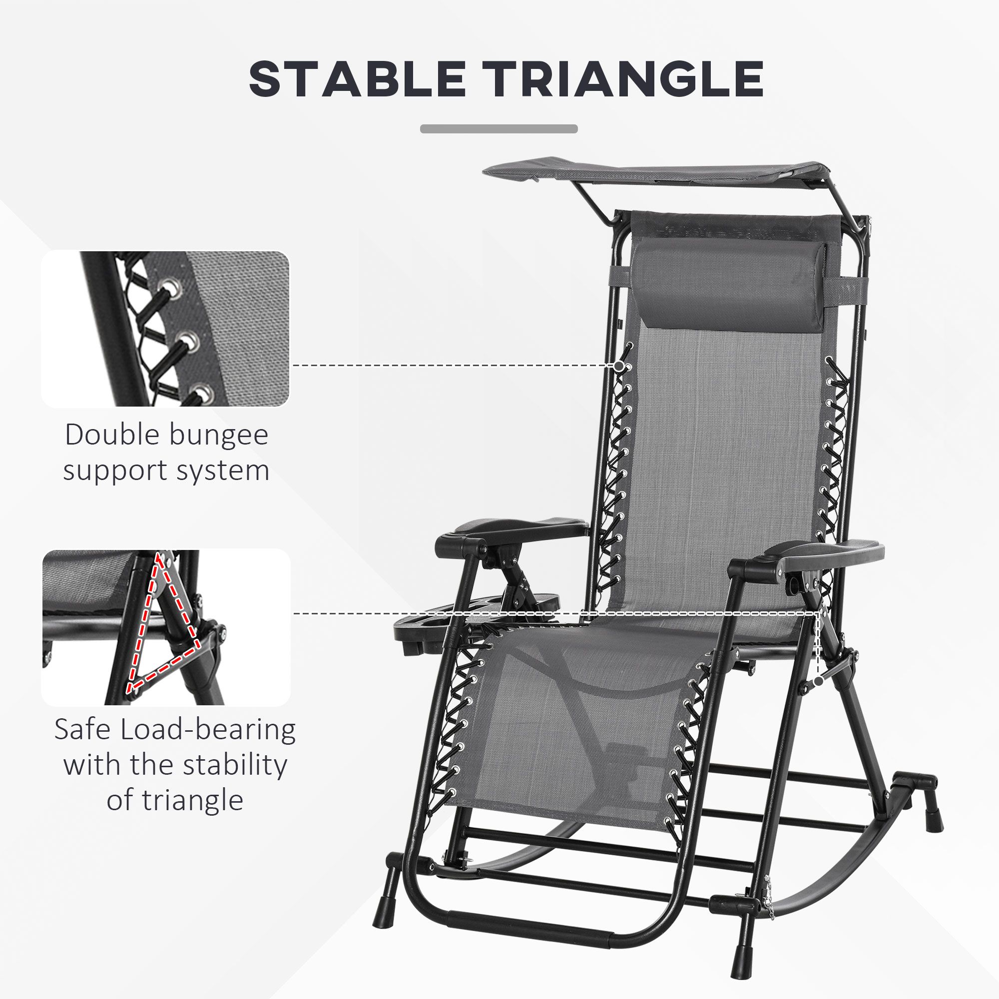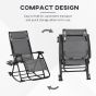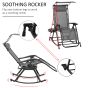 Garden Rocking Chair Folding Recliner Outdoor Adjustable Sun Lounger Rocker Zero-Gravity Seat with Headrest Side Holder Patio Deck - Grey