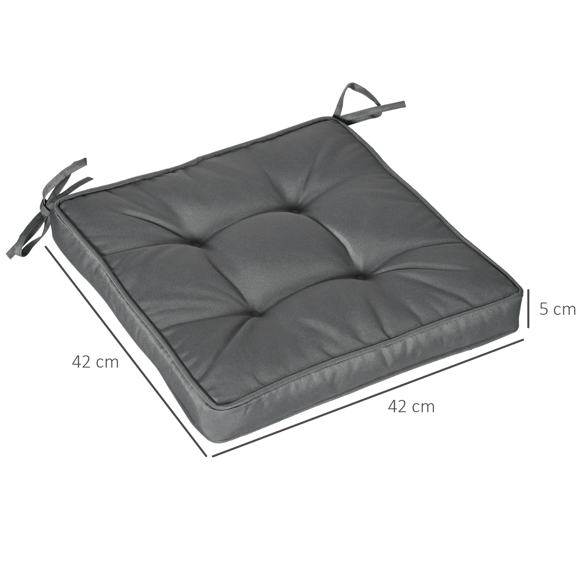 Garden Seat Cushion with Ties, 40 x 40cm Replacement Dining Chair Seat Pad, Grey