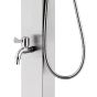 This garden shower featuring a modern design is meant to be a great addition to your swimming pool and other outdoor living areas. This outdoor shower is made of stainless steel, making it weather-resistance. The shower system has a head shower, a hand shower and a foot wash faucet to meet your gardening, watering and quick showering needs. The double-locked hose is flexible and designed for hand shower. It is also equipped with a plastic hand shower holder and a shelf for hanging up the water hose easily. The durable and corrosion-resistant shower base is made of premium WPC and framed with stainless steel with a brushed finish, which ensures durability for years of use. It also offers the highest level of hygiene protection, making it ideal for your outdoor space. Thanks to its sturdiness and versatility, the shower tray can serve as a pool ladder base as well. Soak yourself in a truly relaxing shower experience and enjoy the modern style of this outdoor shower system!