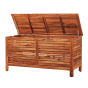 With this solid, wooden chest you can store all your garden accessories or tools in one place. Made of durable acacia wood, with proper care the box is weatherproof, and the items that do not require protection from water can be kept in it all year round. The mechanism works smoothly and allows easy opening. It is the perfect storage solution for any garden. Details: Color: Dark Wood. Main material: Acacia Wood. Additional material: Steel. Weight: 22 Assembly: Full Assembly Required Wood type: Acacia mangium Wood Origin: Vietnam Weight Capacity: 80