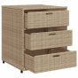 This garden storage cabinet is perfect for keeping your outdoor furniture cushions, gardening supplies, pool towels, and other items organised and easily accessible. Durable material: PE rattan, also known as poly rattan, is a strong, low-maintenance synthetic material that looks like natural rattan. It's lightweight, easy to clean, and commonly used for outdoor furniture due to its durability and weather-resistant properties.Ample storage space: This outdoor storage cabinet has 3 drawers to store your garden tools, pool toys, outdoor cushions, and more.Robust and stable frame: The powder-coated steel frame ensures the garden furniture is strong and stable for daily outdoor use. WarningTo prevent it being overturned, this product must be used with the provided wall attachment device. Good to know:To make sure your outdoor furniture stays beautiful, we recommend protecting it with a waterproof cover.