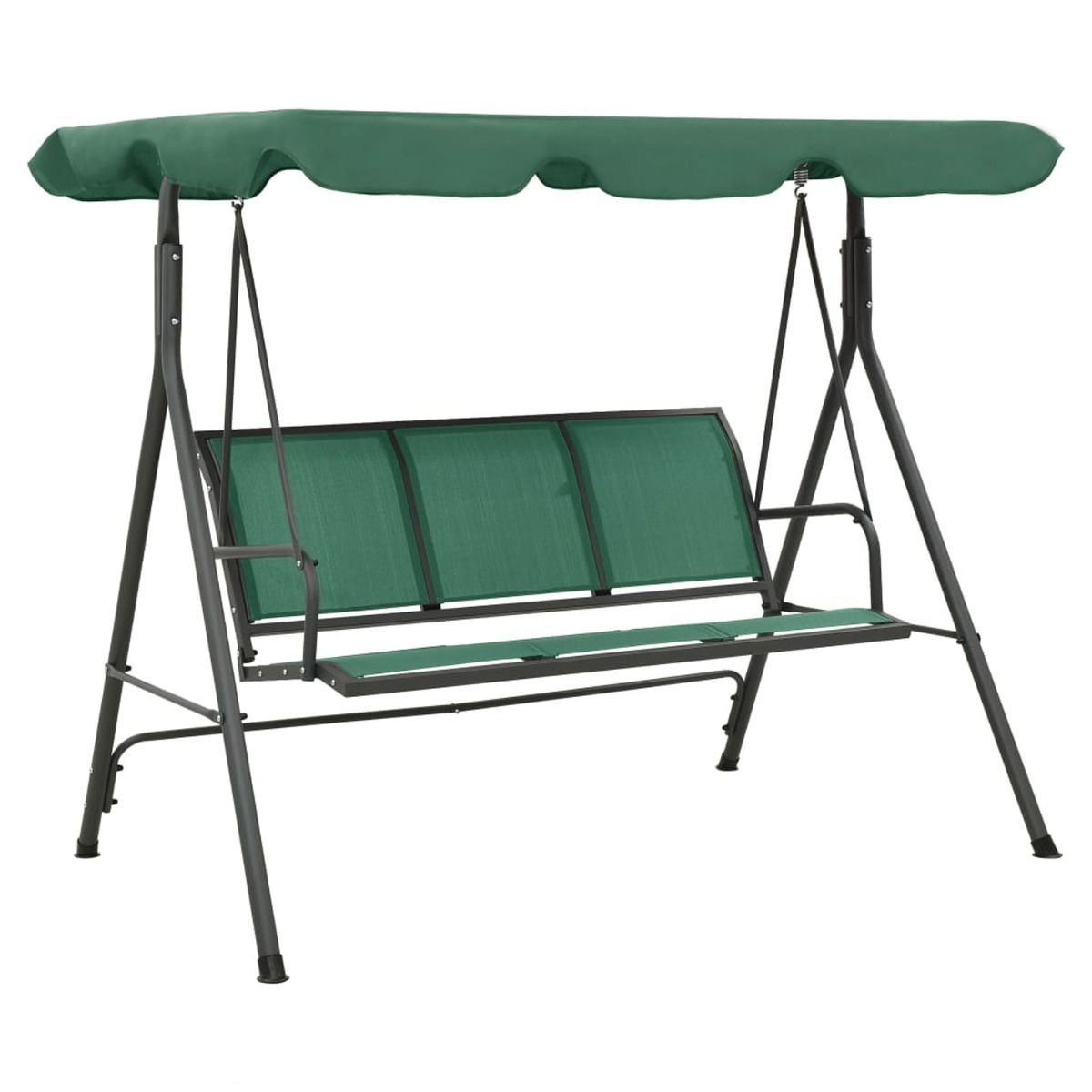 Sit back and enjoy a relaxing time in your garden, on your patio, or any other outdoor space with this garden swing bench. Durable material: Textilene fabric allows air to flow freely through it while being resistant to UV rays. This makes textilene ideal for hot weather. As a durable and strong material, it is highly resistant to tears, punctures and mildew.Sturdy and stable frame: The garden swing’s frame is made of powder-coated steel. Steel is an exceptionally hard and strong material. It offers sturdiness and stability. The powder coating on steel creates a protective layer against wear and tear.Swing design: You can rock back and forth gently on this swing bench to relax during your leisure time.Canopy function: The swing seat is equipped with a polyester canopy to protect you from direct sunlight when you read or relax on summer days. Comfortable seating: The garden swing seat’s backrest and seat offer extra seating comfort. Good to know:To make assembly as easy as possible, each product is delivered with a manual.