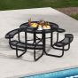 Garden Table - Outdoor Round Picnic Table and Bench Set for 8 with Seats and Umbrella Hole-Black