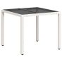 Garden Table with Glass Top White 90x90x75 cm Poly Rattan
