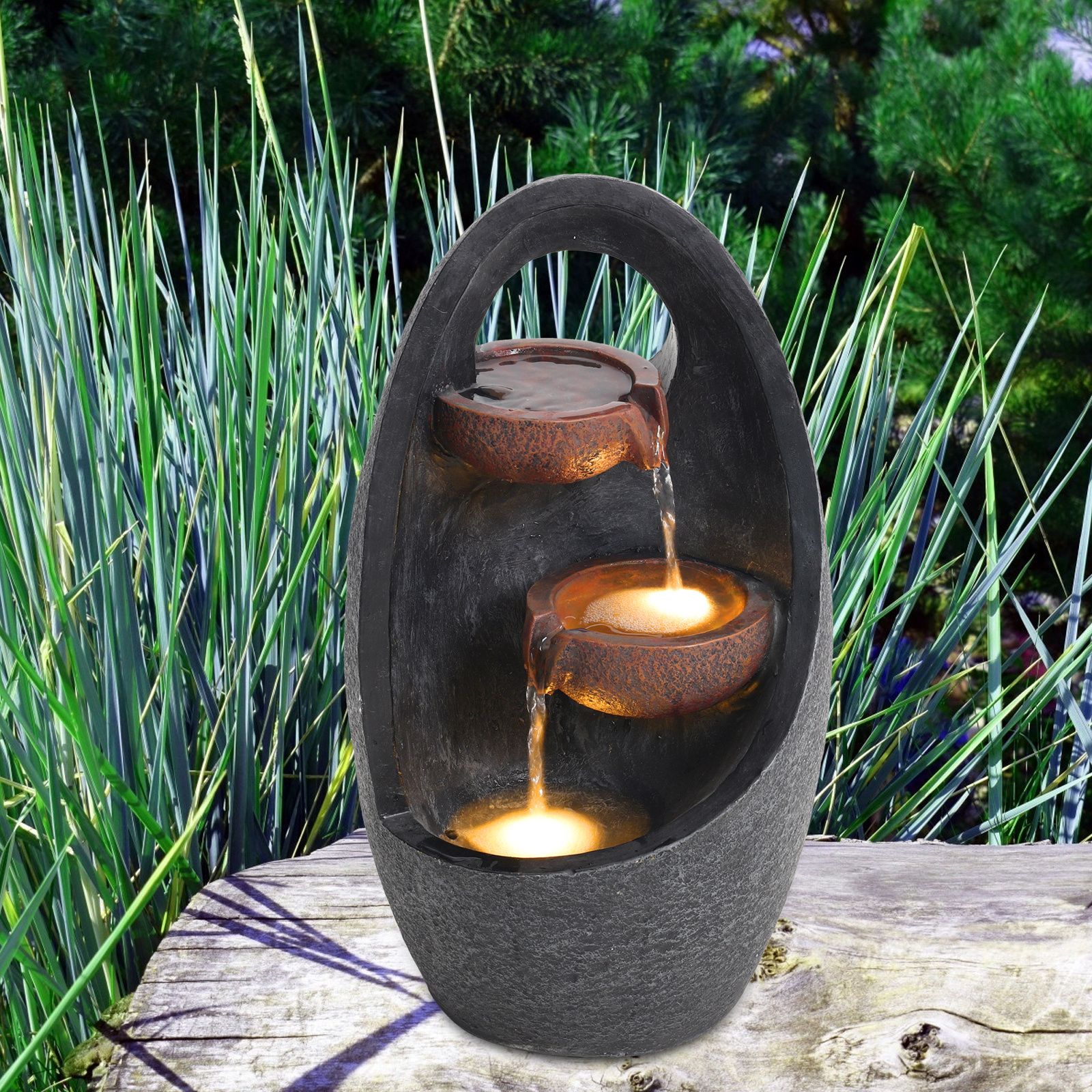 Garden Water Feature Fountain With LED Light Electric Pump Cascade Home Decor