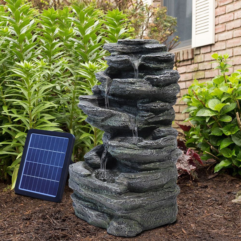 Garden Water Feature Outdoor LED Waterfall Fountain Rockery Decor, Black