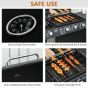 - SAFE USE: The stainless steel handles remain cool to the touch, preventing you from being burnt. An easy-to-read thermometer is connected on the main lid, providing convenience and safety for use. Piezo ignition, operated by rotating the buttons.