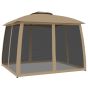 Gazebo with Double Roof and Mesh Walls Taupe 2.93x2.93 m Steel