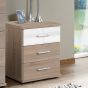 Bedside Table - GEMA 3 Drawer Nightstand Oak and White Gloss 46cm
