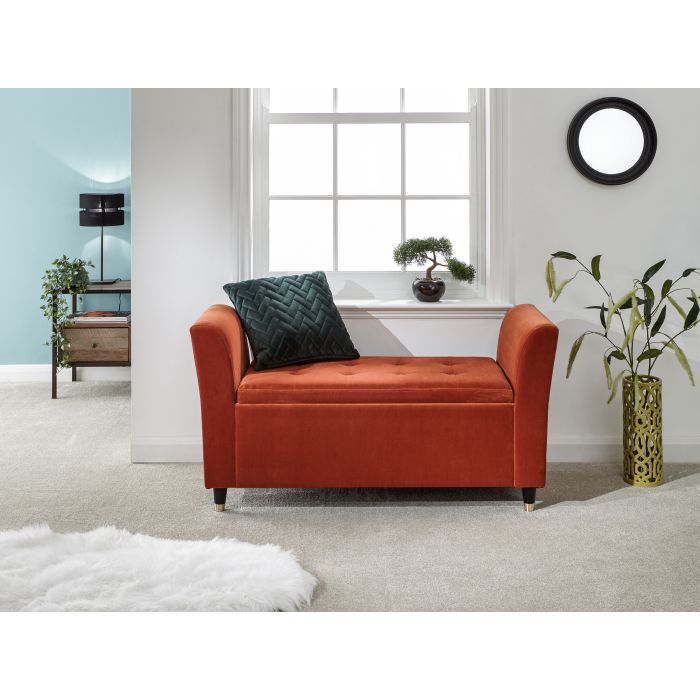 GENIX Storage Window Seat with Quilted Button Top - Russet