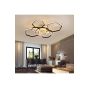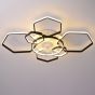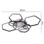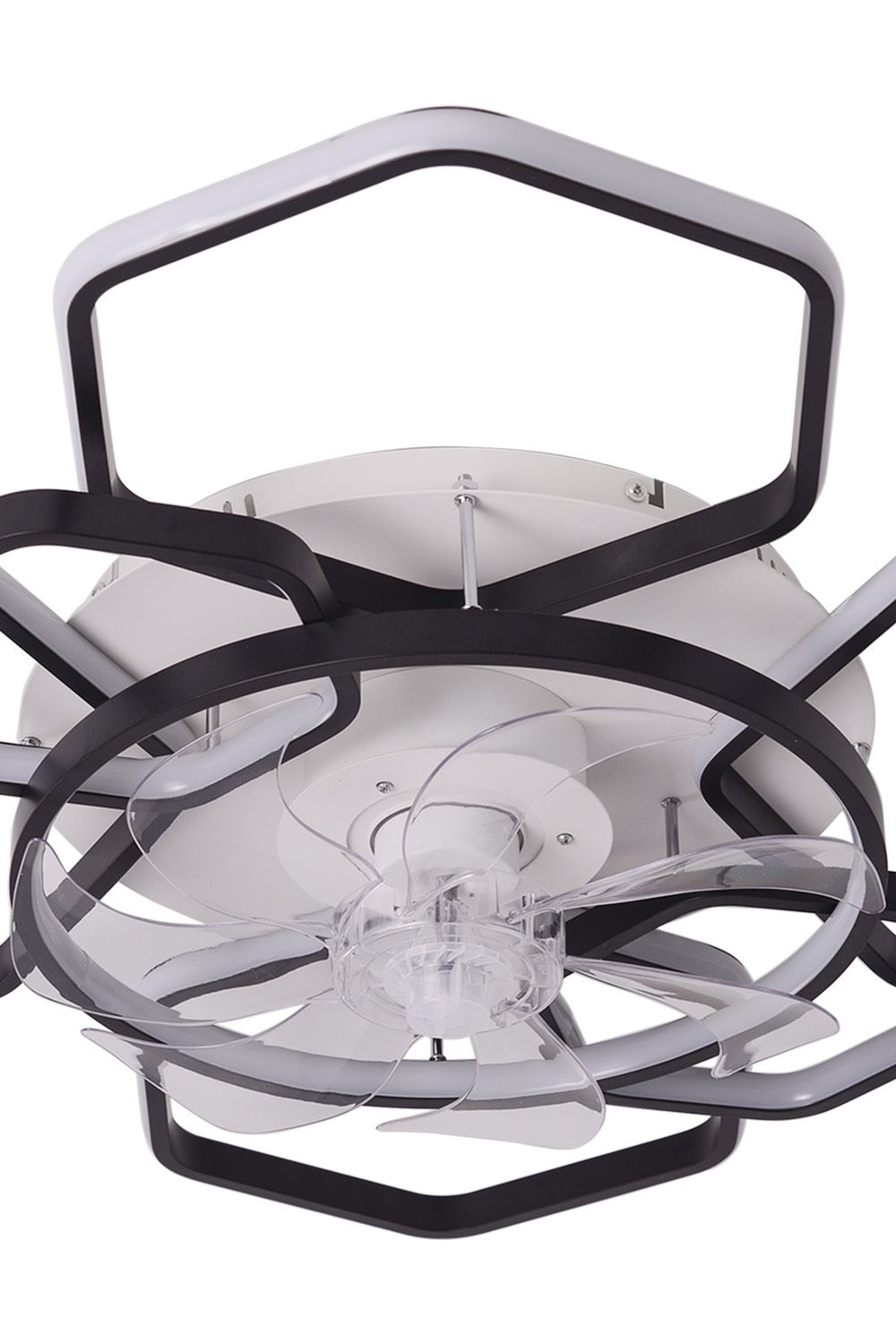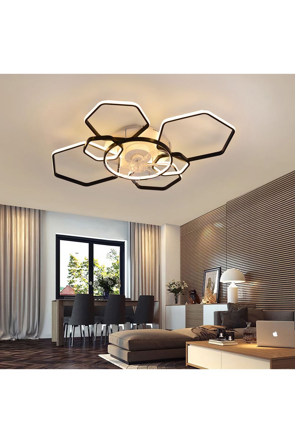 The LED Ceiling Fan Light features a minimalist design ideal for rooms with high ceilings and spacious layouts. Its geometric arrangement of six hexagons and one circle, complemented by bright LED lights, adds a striking touch to modern homes. The built-in fan provides six wind speeds and three color light options, catering to diverse preferences. With a reversible motor, this fixture ensures year-round comfort.
