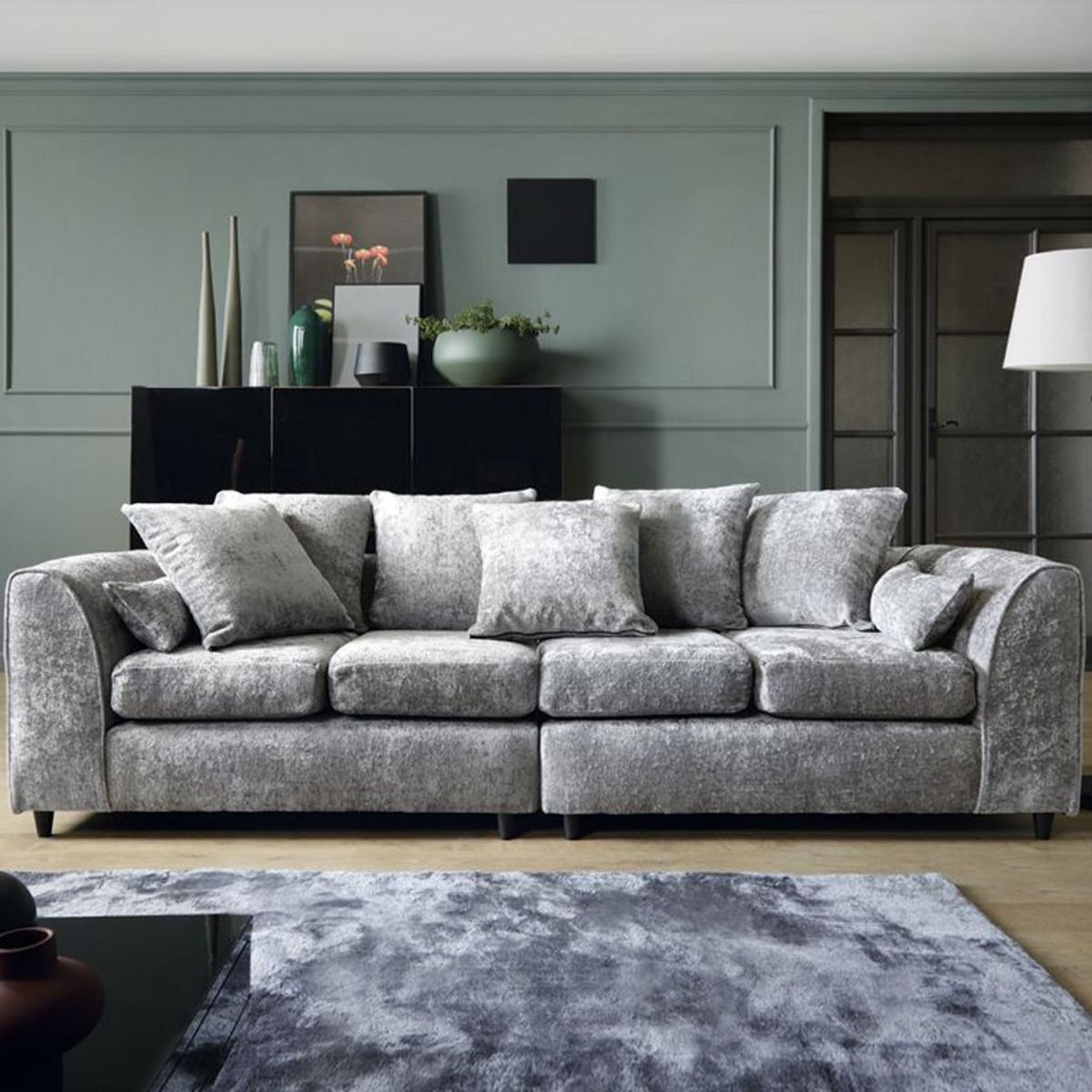 A fabulous 4 seater sofa upholstered in a sumptuous crushed chenille - a fuzzy cotton yarn of fabric that has pile protruding around the weave creating a caterpillar look. Stylishly contemporary with clean straight lines, this stunning sofa would be a great addition to any modern home. Bring a touch of glamour to your living room with the Gilliver collection. All sections in the modular Gilliver sofa series can be used freestanding or put together into exactly the combination you need.