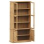 This wooden glass display cabinet provides an ideal solution for organising your collections and will add a touch of rustic charm to your interior. Solid pine wood: Solid pine wood is a beautiful natural material. Pine wood has a straight grain, and the knots give the material its signature, rustic look. Made of solid pine wood, the display cabinet is durable and sturdy.Ample storage space: Equipped with shelves, this cabinet with glass doors provides ample space for keeping your collection of cups, dishes, and small decorative items in good order.Easy to maintain: The glass cabinet is easy to clean with a damp cloth and requires less maintenance.Metal knobs: The display cabinet with glass doors comes with metal knobs that make it easy to open and close the shelf cabinet while adding to the extra beauty. Warning:To prevent it being overturned, this product must be used with the provided wall attachment device.