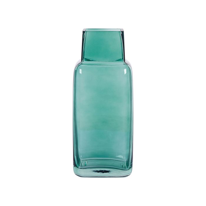 This bottle shaped flower vase will bring a modern touch to every interior. With its rectangular neck and capacious bottom, it can hold single flower stems as well as big bouquets. Thanks to its solid glass construction, you can fill it with water without worrying it splits. Details: Color: Green. Main material: Glass. Weight: 0.9 Assembly: Does Not Require Assembly