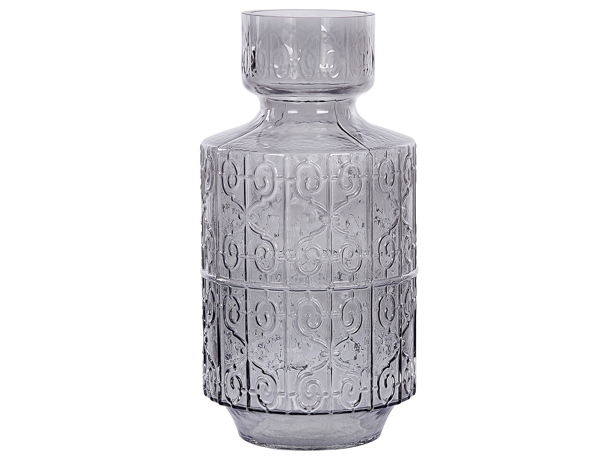 Decorate your interior with this timeless vase in grey. Made with care and precision from high-quality glass, it is perfect for both artificial and natural flowers. The vase features an eye-catching decorative pattern that enriches the decor of any traditional living room or dining room. Details: Color: Grey. Main material: Glass. Weight: 1.2 Assembly: Does Not Require Assembly