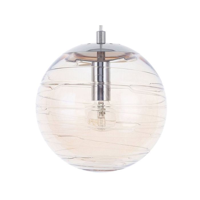 Stylish and bold, this pendant ambient lamp instantly upgrades any interior. Made of a sculptural glass with a spherical shade and a subtle amber tint complements your dining room, kitchen, or bedroom perfectly. It features free-form swirls inside the globe that create a dazzling light effect. The lamp fits in many home decors - from industrial to vintage or contemporary. Hang it over a table for a stunning accent or in the centre of a room to make it well-lit and cosy. Details: Color: Gold, Transparent. Main material: Glass. Additional material: PVC. Weight: 1 Assembly: Requires Installation