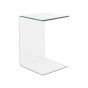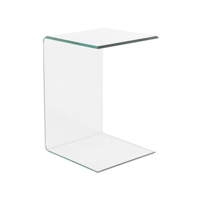This cutting-edge side table is a true eye-catcher. Thanks to the minimalist yet unusual design it seamlessly blends in with modern, contemporary and industrial rooms. Made from robust glass, the piece offers a strong yet easy-care top and a shelf at the base on which you can display your favourite decor pieces. Place it by the sofa or armchair and gain additional space for your morning coffee, a favourite book or reading light. Details: Color: Transparent. Main material: Tempered Glass. Weight: 19 Assembly: Does Not Require Assembly Weight Capacity: 30 Legs Height: 60