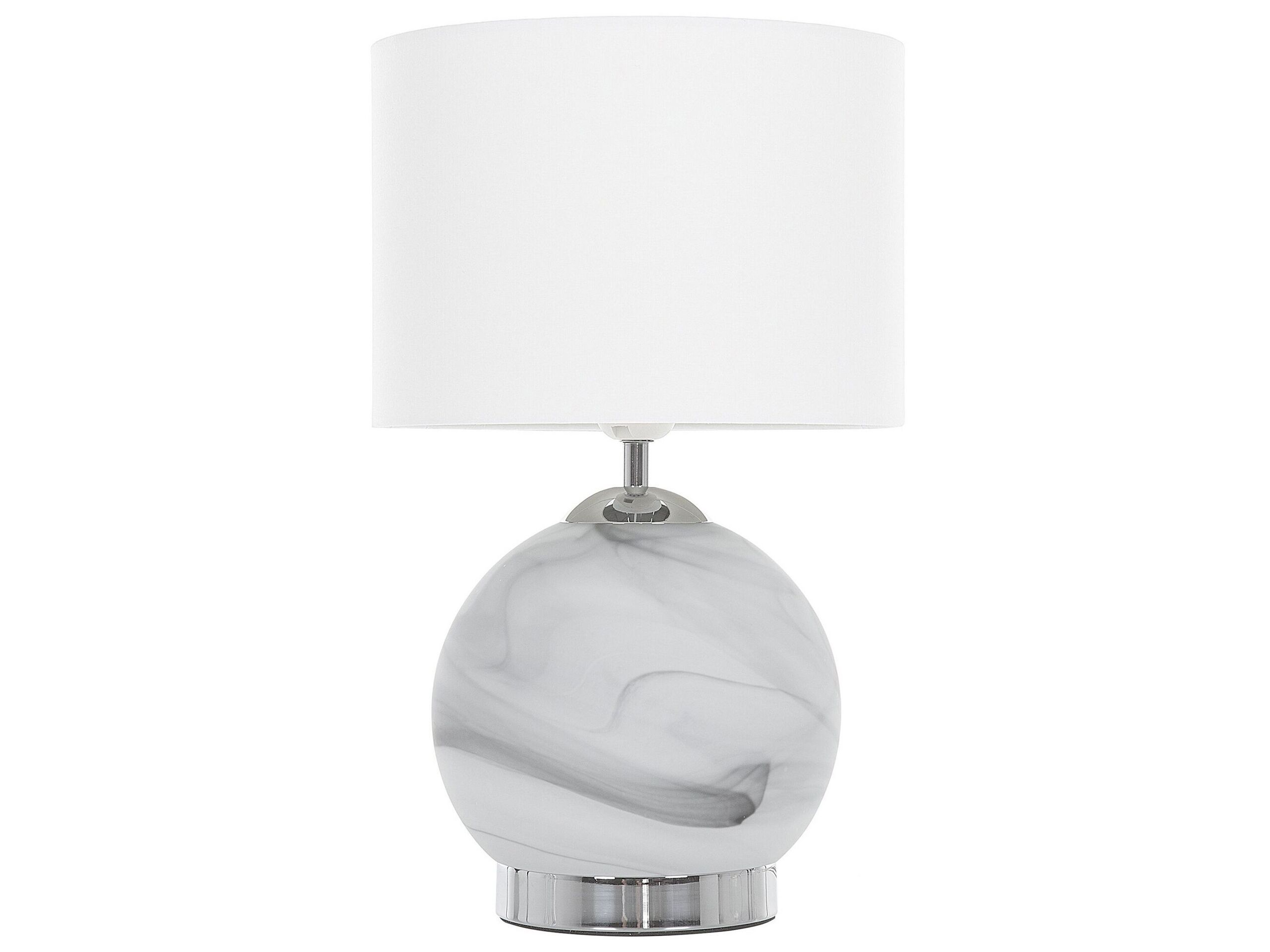 Add a touch of glamour with this simplistic yet stylish table ambient lamp. With a white drum-shaped shade made from durable polyester fabric, it diffuses the light to a warm glow. The table lamp stands on a glass ball-shaped base which has a marble effect and gives it a sophisticated appeal wherever it is placed. Details: Color: White. Main material: Iron. Additional material: Polyester. Weight: 2 Assembly: Partial Assembly Required