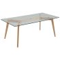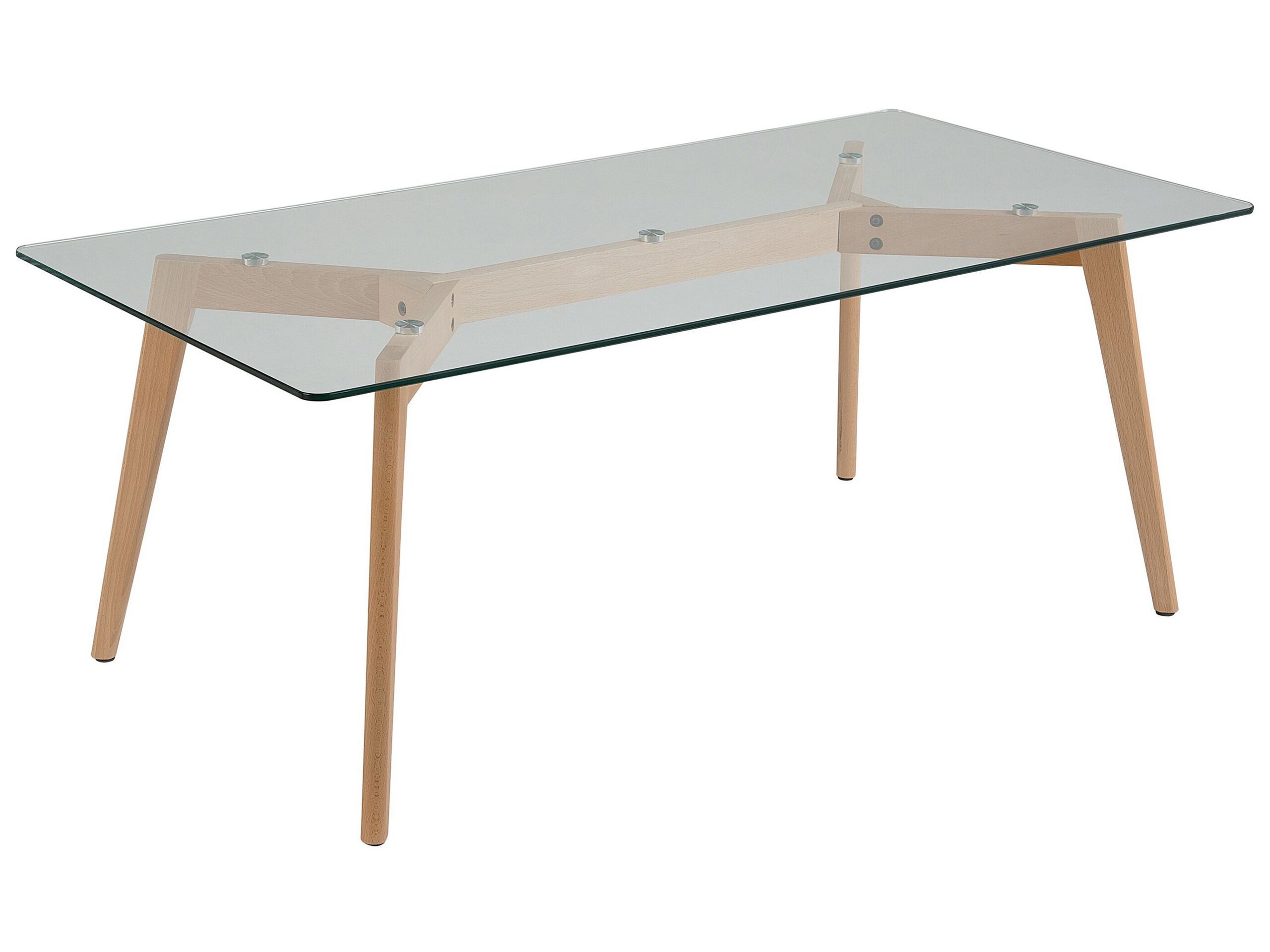 Stylish, sturdy rectangular glass coffee table with distinct beechwood legs. Ideal for a living room or office where it will surely add a stylish touch to any interior. The coffee table features a hard-wearing tempered glass top that can easily withstand daily use. The glass top's beautiful clear finish complements perfectly the wooden legs. A masterpiece of timeless design, the coffee table is a beautiful piece of furniture and will add a touch of elegance to both urban and country-style homes. Details: Color: Transparent, Light Wood. Main material: Glass. Additional material: Beechwood. Weight: 18 Assembly: Partial Assembly Required Wood type: Fagus Sylvatica Wood Origin: China Weight Capacity: 10 Legs Height: 46