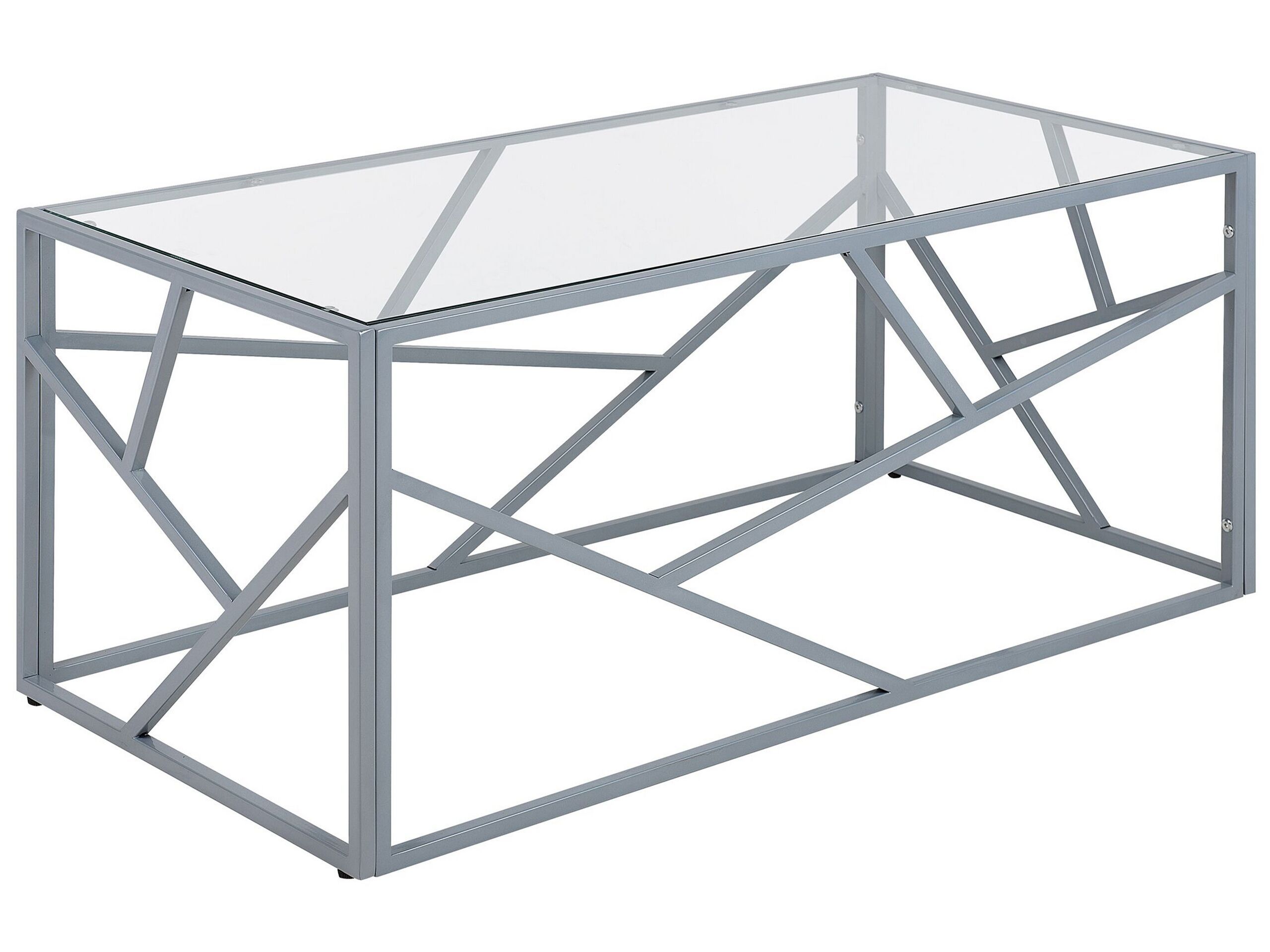 Featuring a modern and industrial inspired design, this coffee table won’t surely go unnoticed. The geometric metal frame and glass table top create an outstanding composition – a brilliant fit for any contemporary living room or office. The table is equipped with protectives pads, allowing you to move it about without fear of floor damage. Details: Color: Silver. Main material: Glass. Additional material: Metal. Weight: 12 Assembly: Full Assembly Required Weight Capacity: 60 Legs Height: 43
