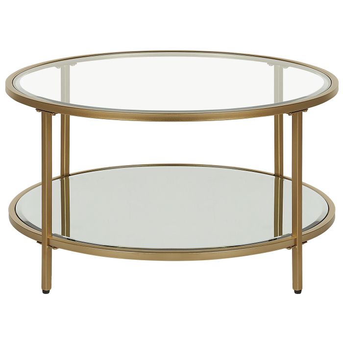 Decorate your living room with this stylish coffee table to instantly add a modern vibe to the space. The piece's tabletop is made out of durable tempered glass, while its frame is crafted out of iron, making the table long-lasting. The coffee table also features a shelf, where you'll be able to place smaller trinkets, decorations or newspapers. What is more, the shelf features a mirrored finish for an extra sophisticated look. Thanks to its shape, and design, you won't have any problems matching this furniture with various decor styles. Details: Color: Gold, Transparent. Main material: Tempered Glass. Additional material: Iron, Tempered Glass. Weight: 11 Assembly: Full Assembly Required Weight Capacity: 45 Legs Height: 10