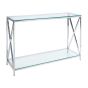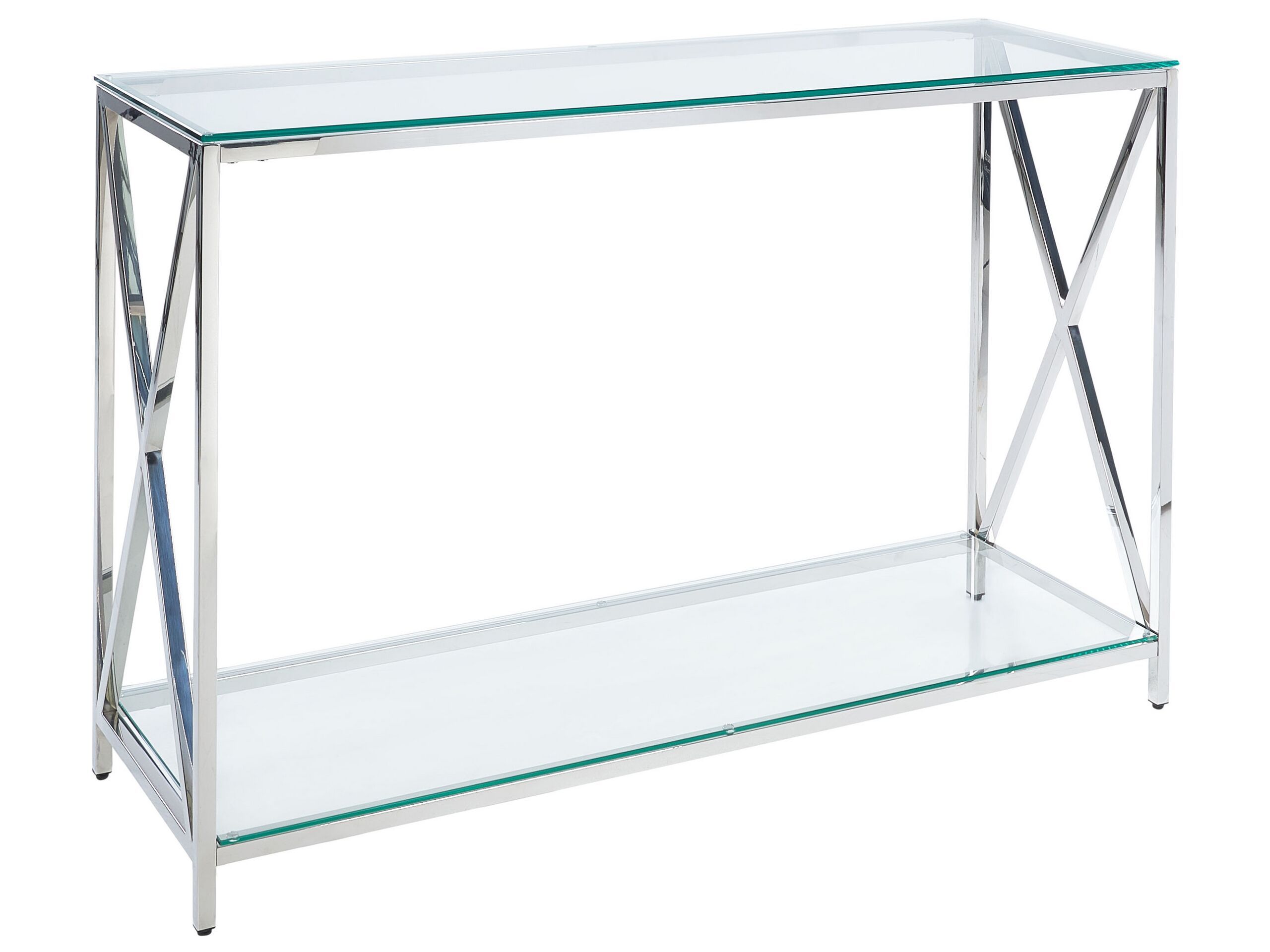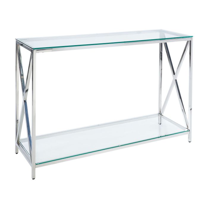 A minimalistic console that will be an eye-catching addition to any modern, Scandinavian or industrial interior. Made of tempered glass and stainless steel, it is stable and durable. It can be used as a dressing table in the bedroom or a table for flowers or photo frames in the living room and hall. The table does not require special care to charm with its appearance for many years. Details: Color: Silver, Transparent. Main material: Tempered Glass. Additional material: Stainless Steel. Weight: 22 Assembly: Full Assembly Required