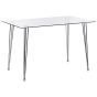 Equip your dining room with this rectangular table and enjoy the modern vibe it will introduce to your space. The piece's tabletop is made out of durable and high quality tempered glass - it means the table won't require daily care to last for many years. The modern design is also highlighted by chromed legs, which guarantee stability of the whole construction. A combination such as this won't go unnoticed by your house guests! Details: Color: Silver. Main material: Tempered Glass. Additional material: Iron, Tempered Glass. Weight: 22 Capacity: 4 People Assembly: Legs to be Fitted Weight Capacity: 100 Legs Height: 73