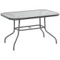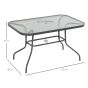 Glass Top Garden Table Curved Metal Frame w/ Parasol Hole 4 Legs Outdoor Balcony Sturdy Friends Family Dining Table -Grey