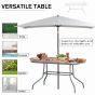 Effortlessly complement your outdoor set-up with this large table from. A versatile design, which blends itself in with a large variety of garden dining sets, it uses thick metal for the smoothly curved frame for a stable structure, with four evenly spaced legs to provide balance when in use. Aquatex glass covers the whole of the top, with a hole in the middle to place a sun umbrella for protective shade. A modern way to charm your guests when they visit.