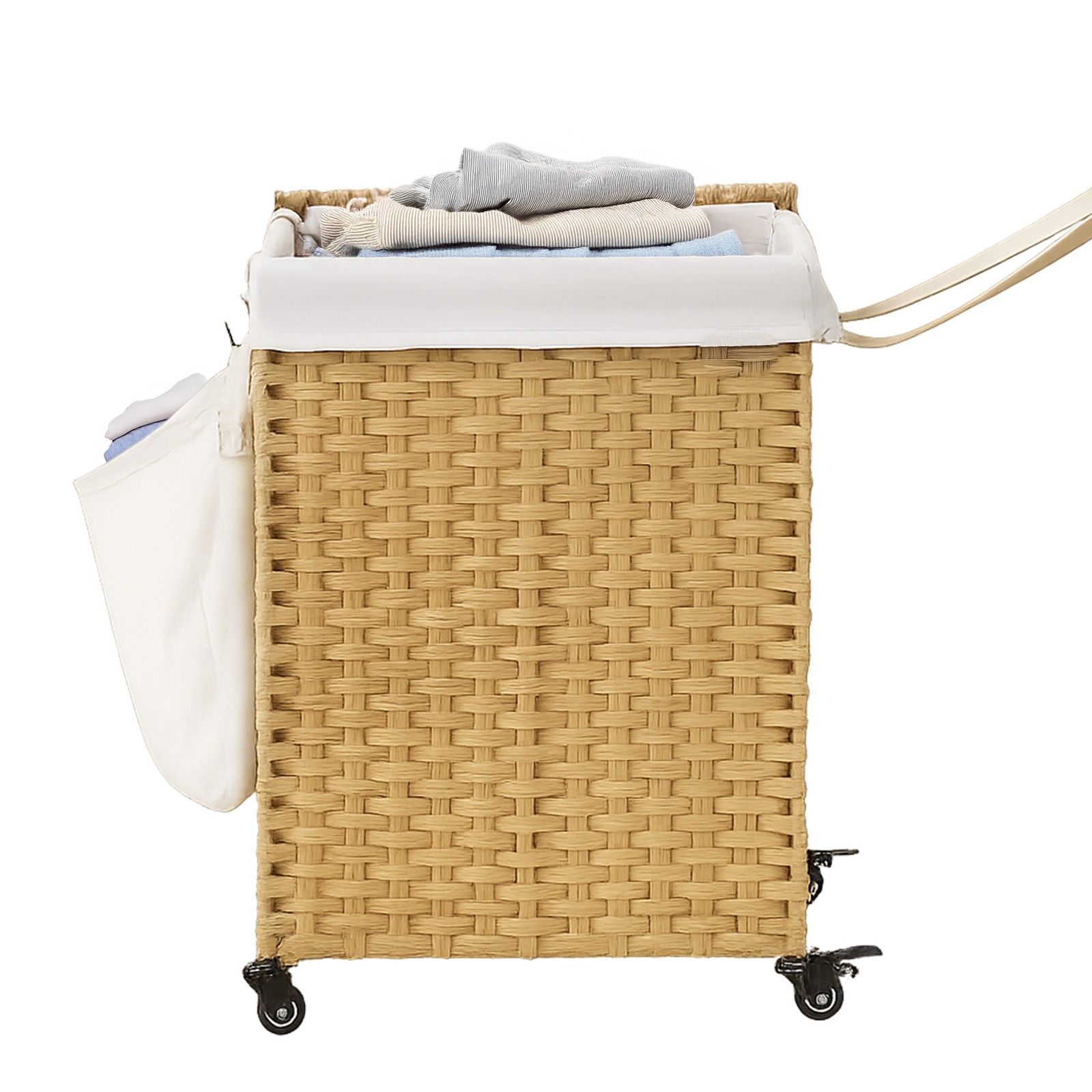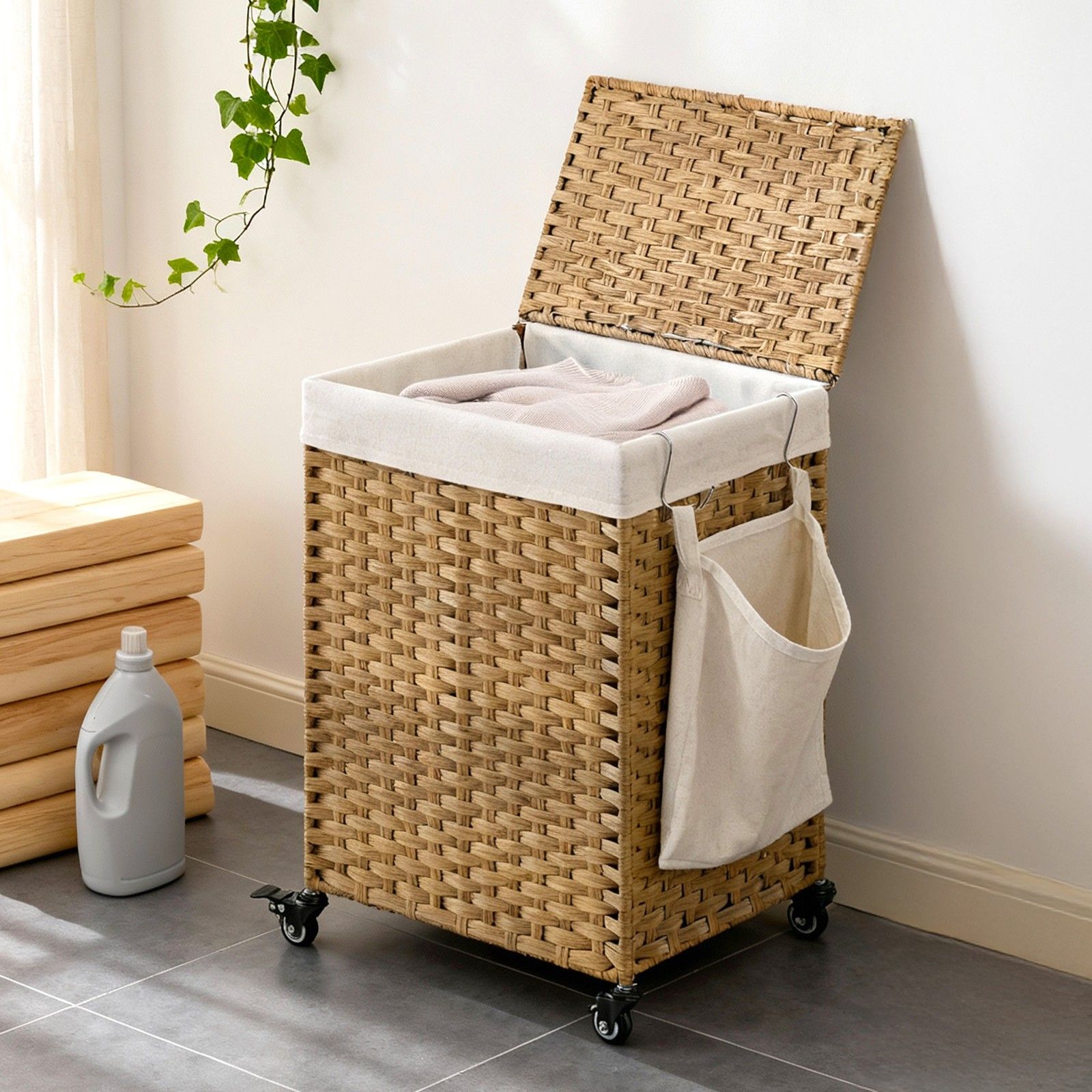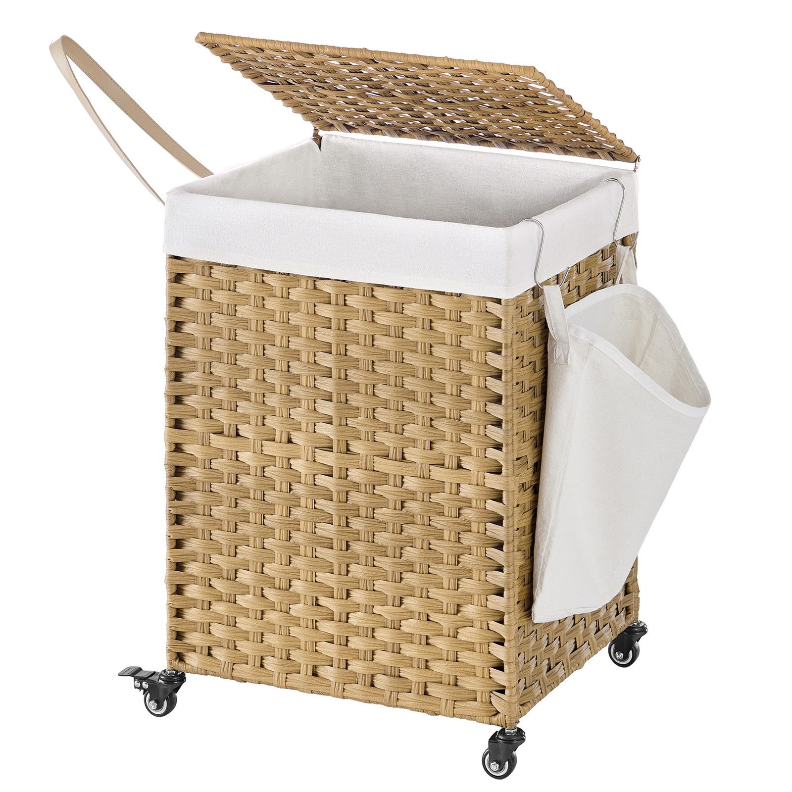 GLENFORDE Rolling Laundry Basket with Lid 120 L - Light Oak