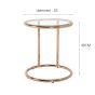 Enhance your living room with our stunning side table featuring a sleek metallic base and transparent glass top for a casual yet stylish look. Perfect for placing next to your sofa or armchair, it provides a convenient spot for enjoying a book with a cup of tea. Crafted from premium glossy materials, it's effortlessly easy to clean and maintain.