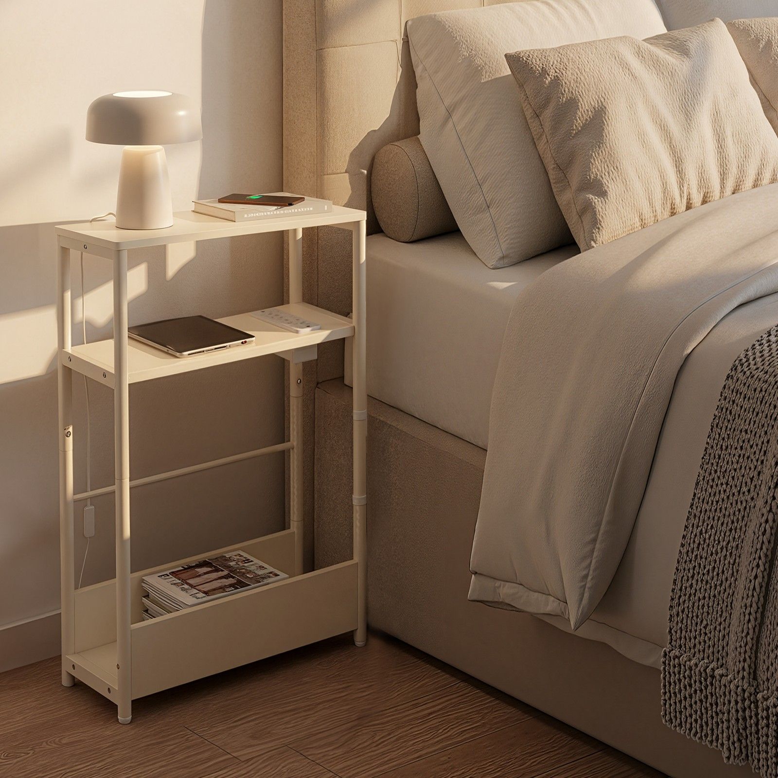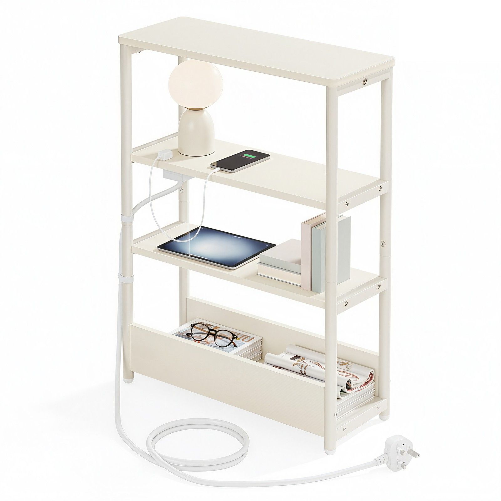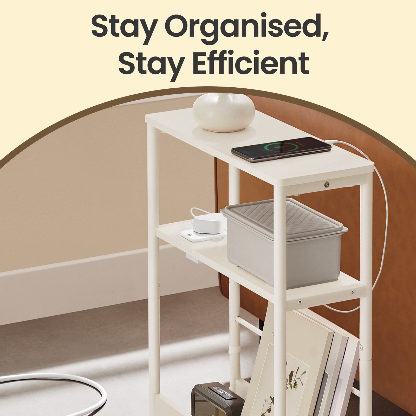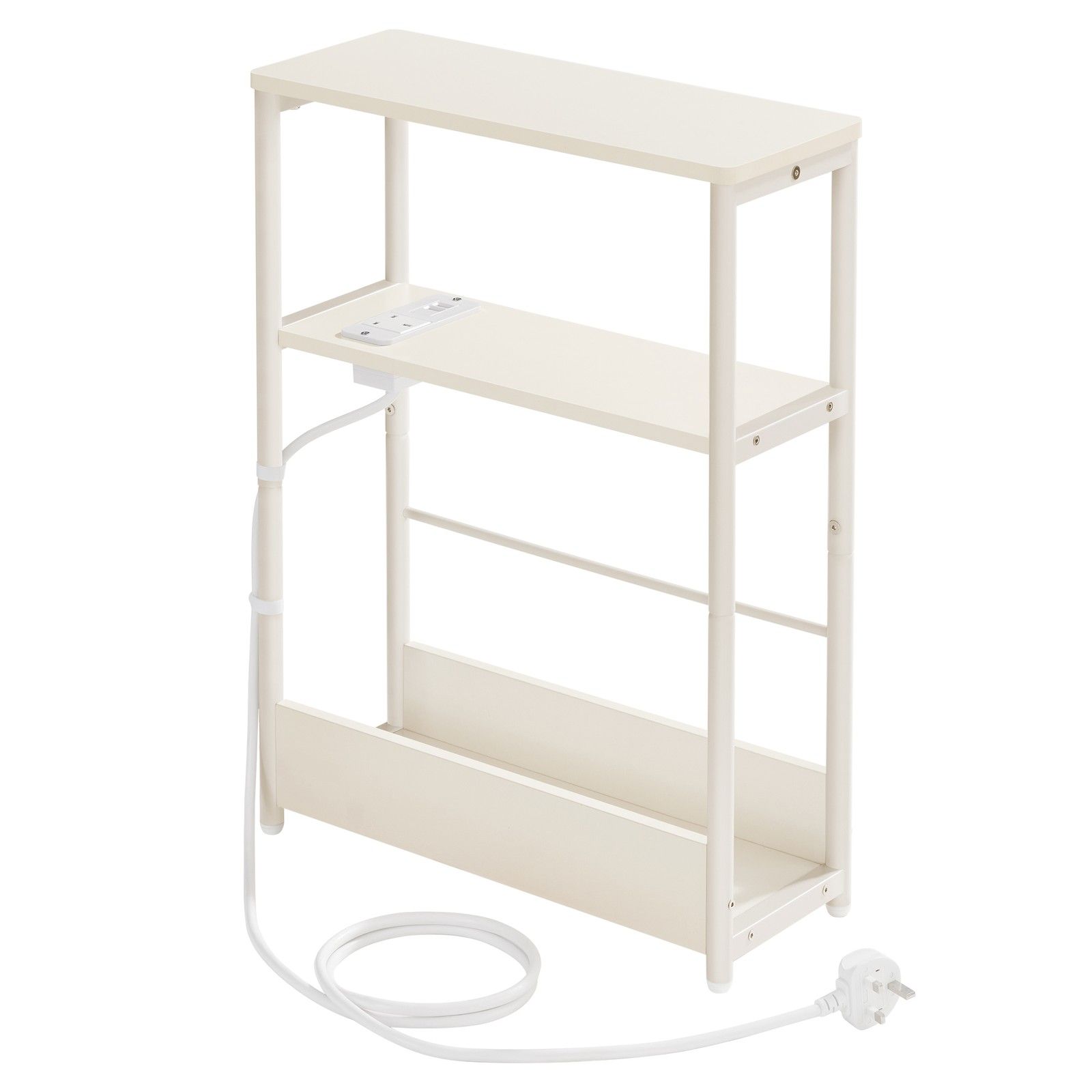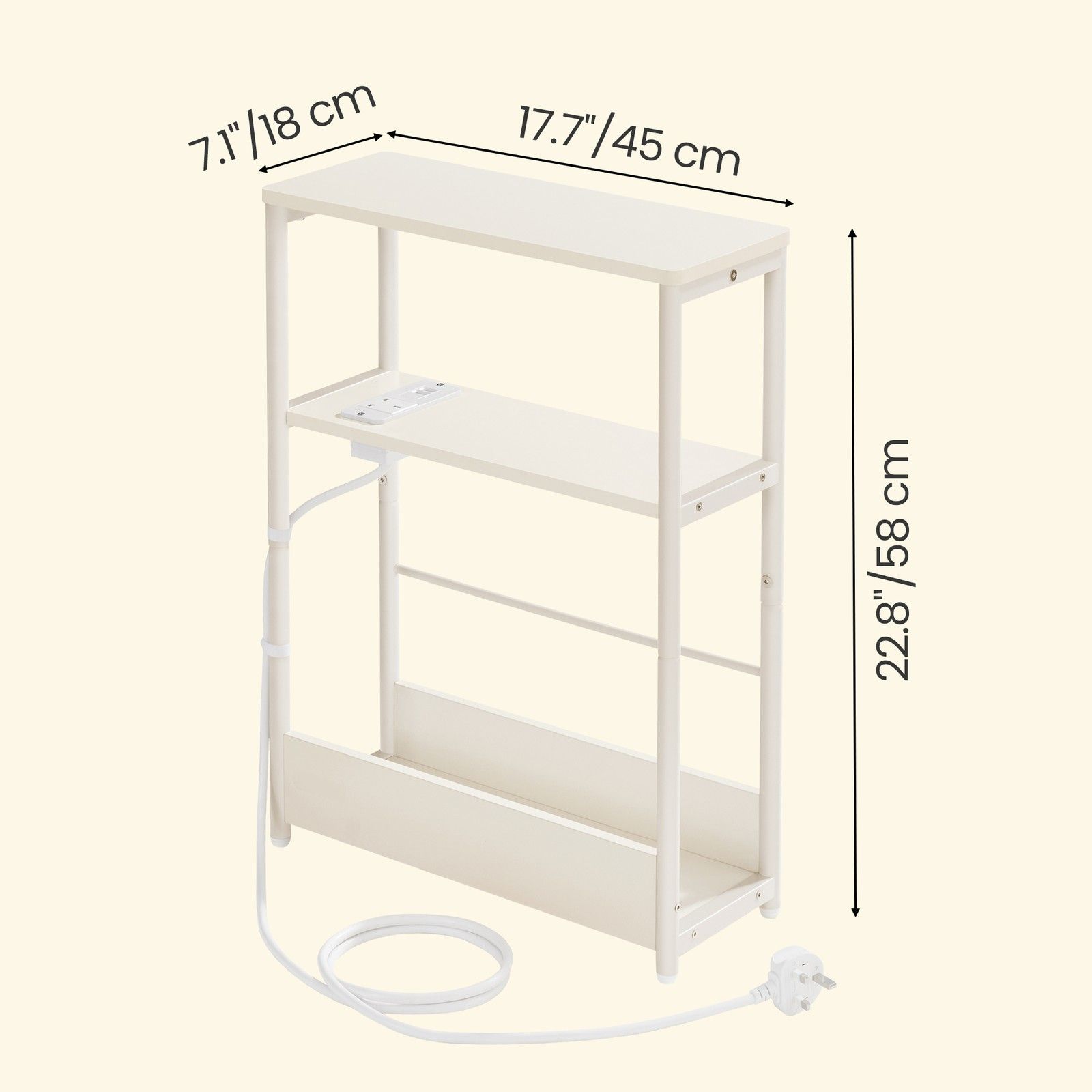 GLOVIN 3 Tier Slim Side Table with Power Strip - White