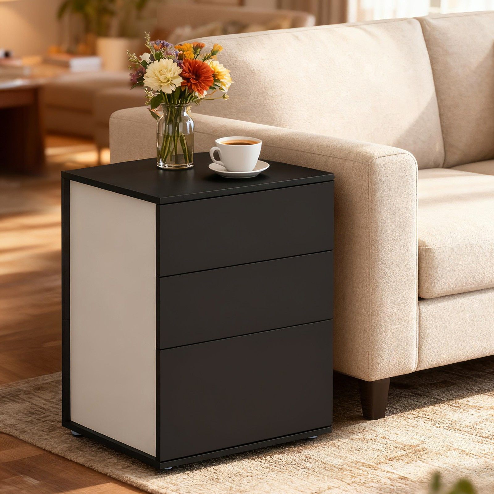 Enhance your interior with the GLOVIN Modern Minimilist Bedside Table with Drawers - Black. This versatile furniture piece offers a stylish way to organise your home while adding a modern touch to any room. Crafted from durable materials, it provides a strong and reliable structure for everyday use. Perfect for living rooms, bedrooms, offices or hallways. It offers everyday convenience with lasting durability. Thoughtfully designed for simple setup and durability.