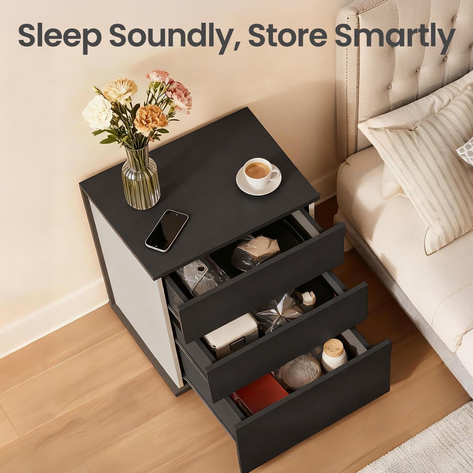You're reviewing:GLOVIN Bedside Table with Drawers - Black