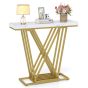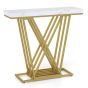 Gold Console Table Modern Sofa Table with Faux Marble Rectangular Tabletop-White