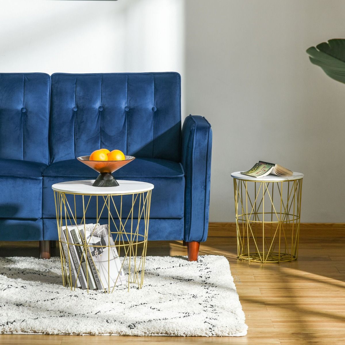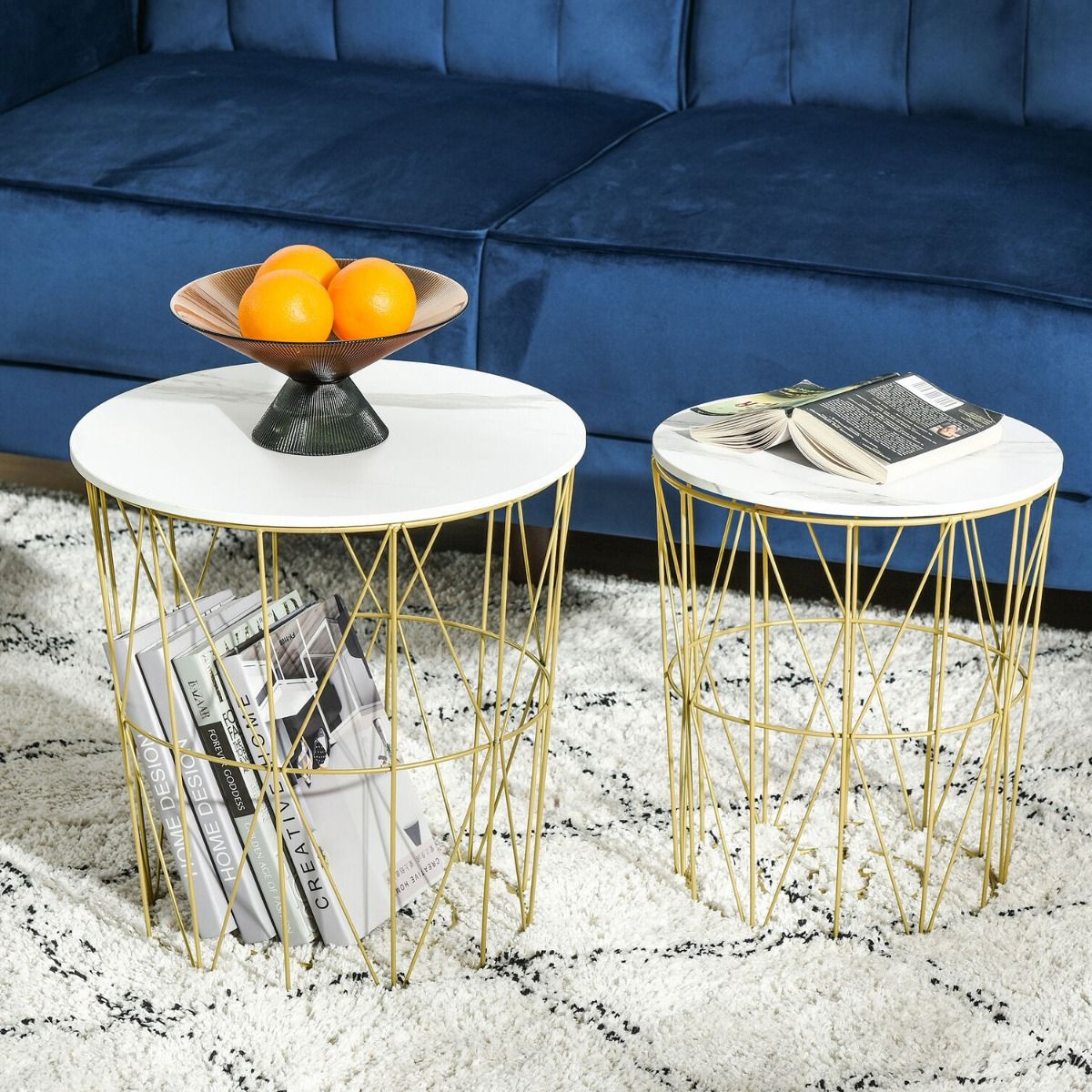 Gold Steel Frame Set of 2 Nesting Tables With Removable Top, White