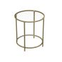 Stylish Side Table with Golden FrameThis glass side table not only provides you with a stable storage surface on which you can present a vase with magnificent red roses. In addition, you'll also get a new decorative piece with a gold frame you can place next to your sofa as an eye-catcher, next to your bed as a bedside table, or in your office to store water and pastries. Thanks to the robust materials, the small table is even suitable for your balcony or terrace.The round gold frame made of powder-coated iron and the glass element create an unmistakable contemporary look, which fits both in stylish rooms with a large upholstered couch and carpet and in rooms with minimalist furnishings.Find Unique Accent Furniture at VASAGLEThis side table should not be the only highlight in your apartment. Take a look at the other accent furniture from VASAGLE.