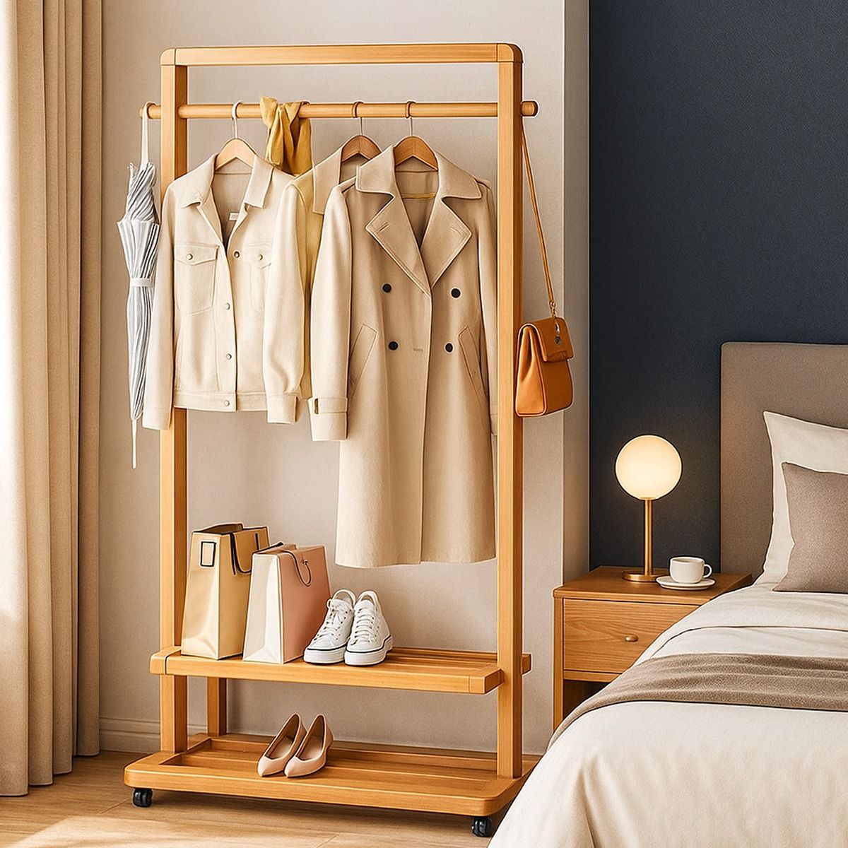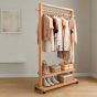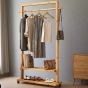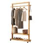GRALVEN Clothes Rail Rolling Bamboo Garment Rack with Shelf and Wheels - Natural