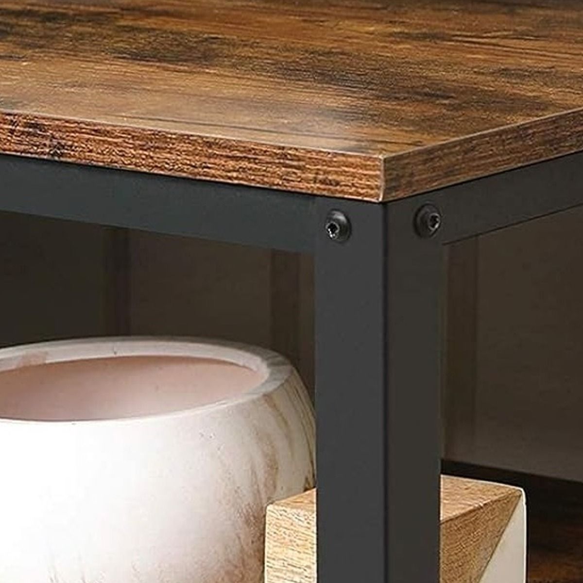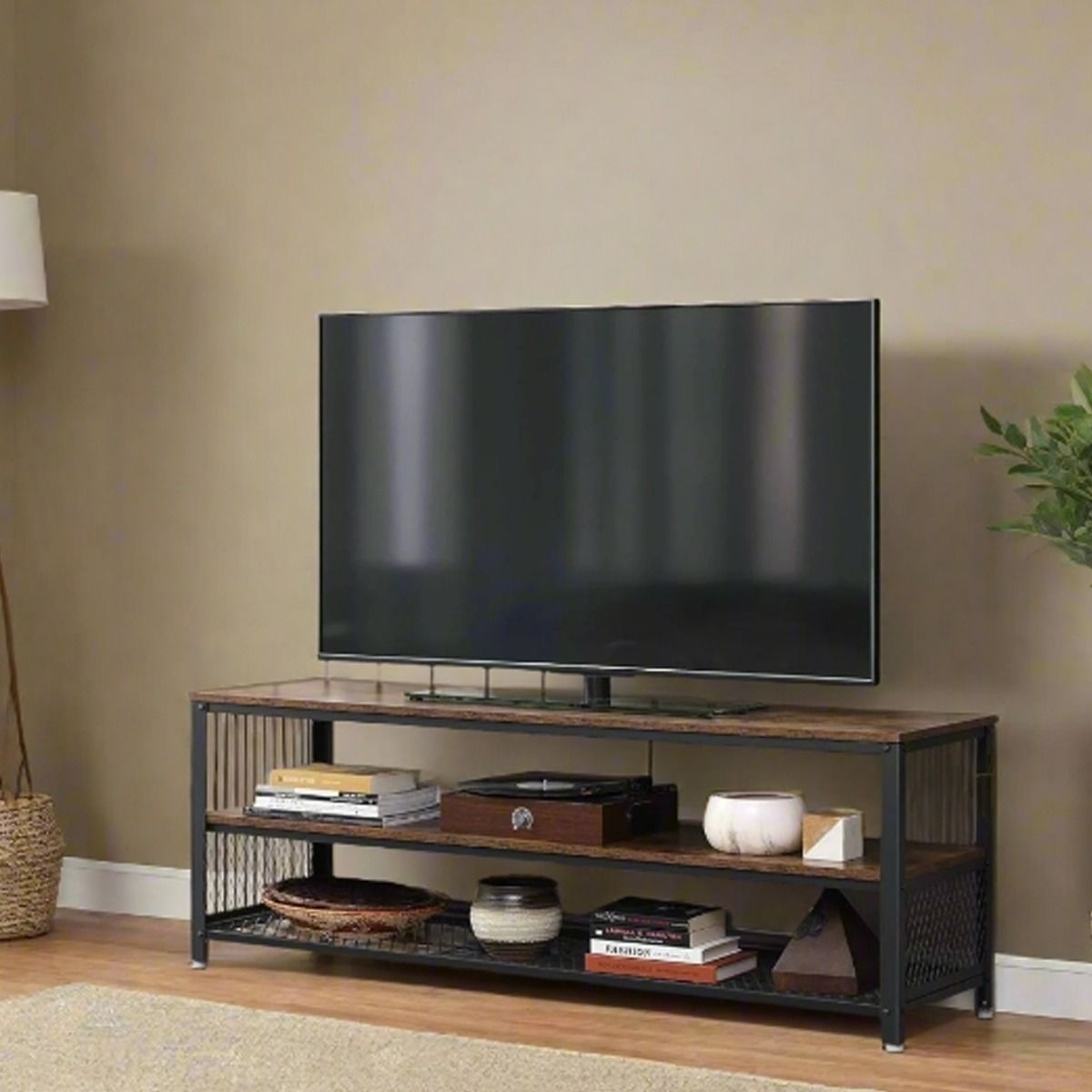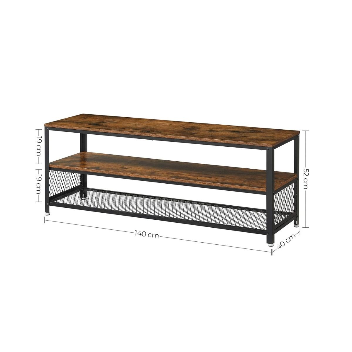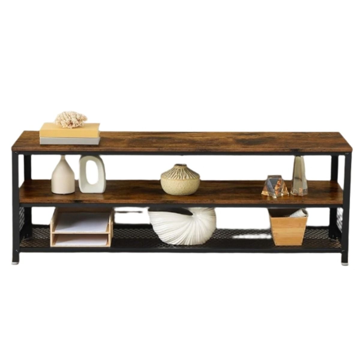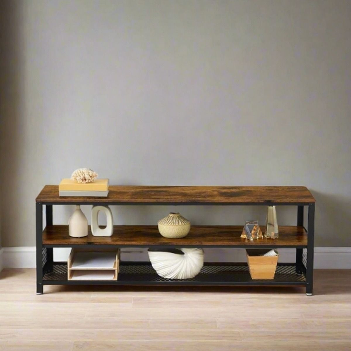 GRALVEN TV Stand 140 cm Console Table with Metal Frame and Shelves - Rustic Brown