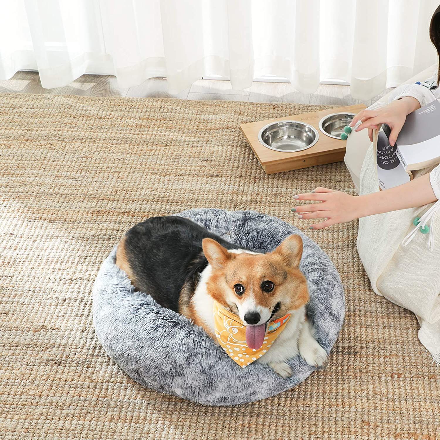 Always at Your Side Where does your furry friend prefer to sleep? In the living room or in the bedroom? Or do they only want to relax next to you? Place this dog bed filled with memory foam pieces next to your desk so your darling can lounge comfortably next to you while you work. Quality or Style? This cute, donut-shaped dog bed makes no compromises on quality. Boasting quality plush, memory foam pieces filling, PP filling, and a non-slip bottom, it's comfortable and durable. The zipper on the bottom also allows you to remove the cushion and clean the cover. What a nice gift idea for medium-sized dogs or cats!