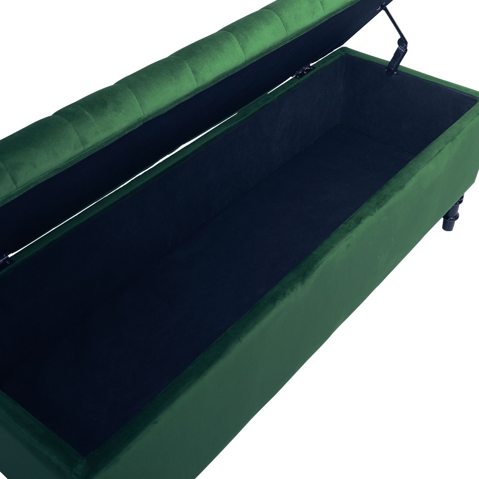 Green 50 Inch Storage Bench Velvet Entryway Bench Soft 4ft Wide