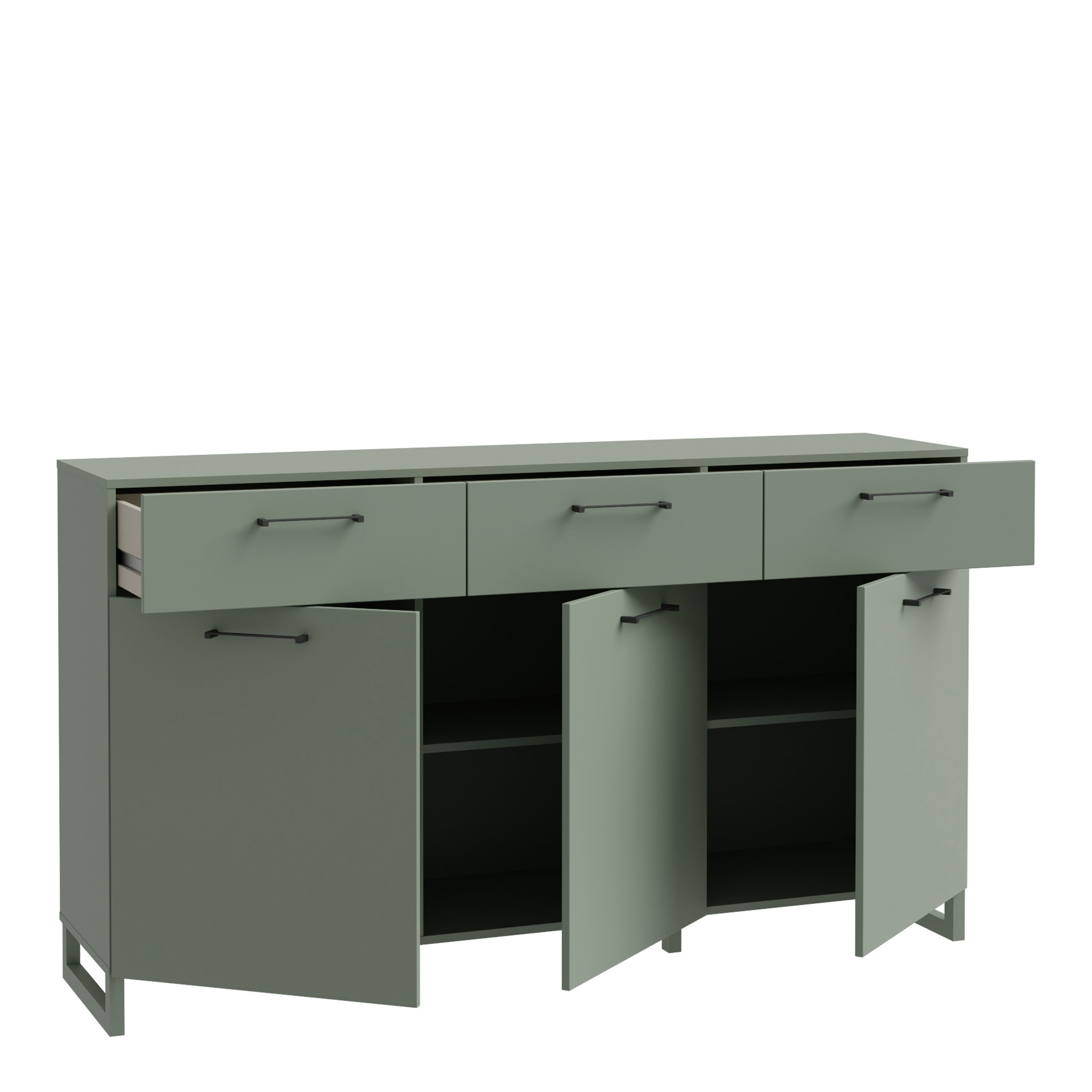 SULI Green Chest of Drawers - Extra Large-sized, 3 Drawers, 3 Doors, Double