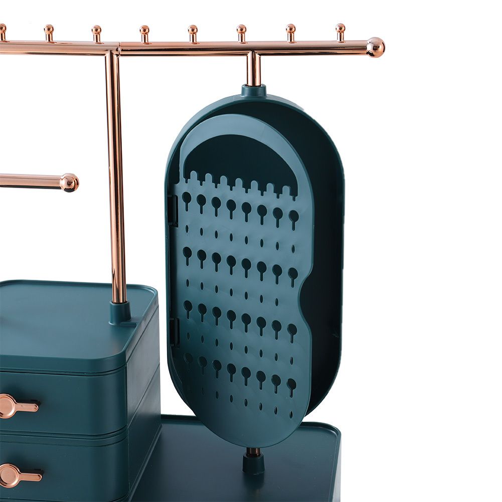 Green Jewelry Organizer with Hanging Rod Necklace Earring Display