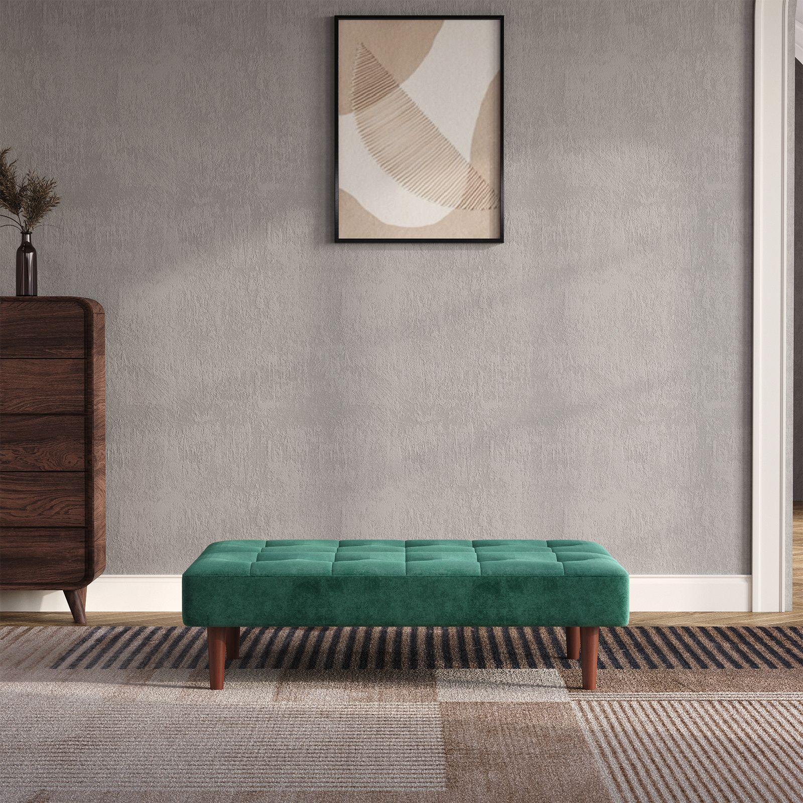 Green Modern Small 2-Seater Convertible Sofa Bed with Wooden Legs