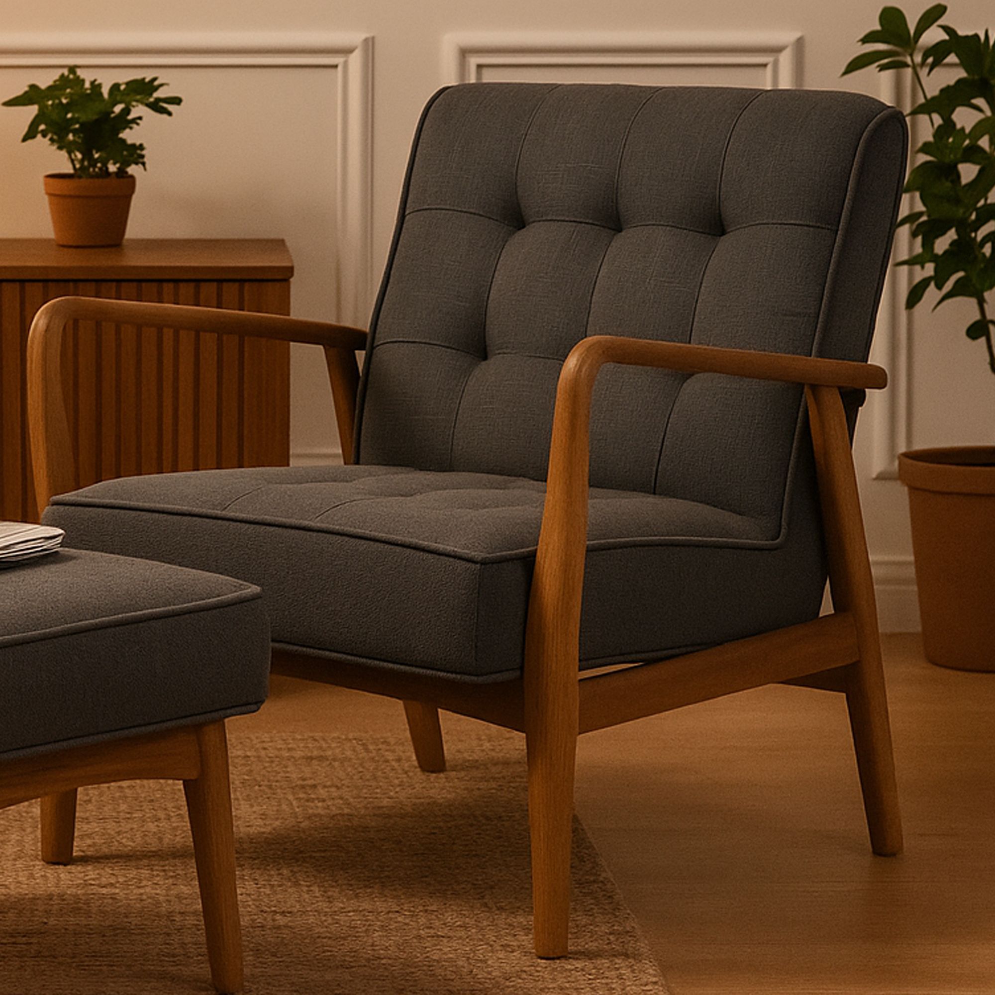 The GREENLEIGH Linen Armchair Dark Grey combines modern craftsmanship with a touch of traditional charm. Built to last and styled for versatility, it enhances any space effortlessly.