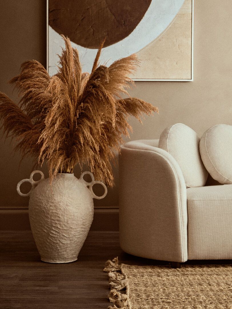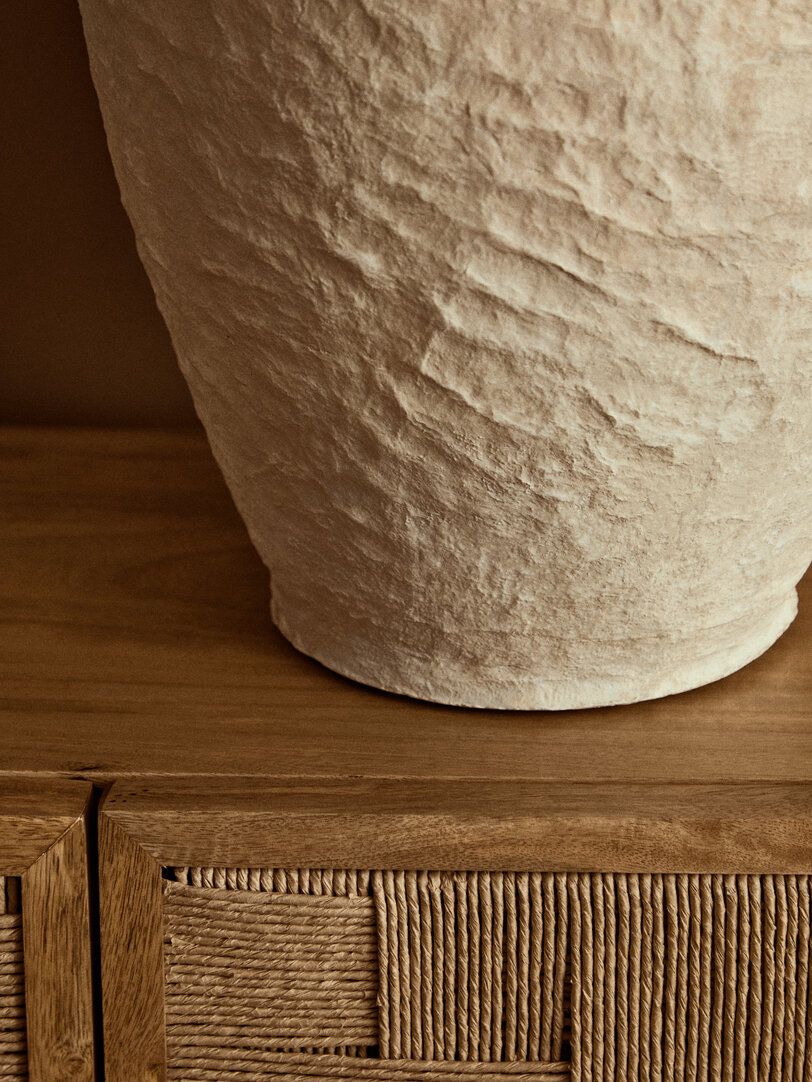 GRENTHRA Round Large Cotton Mache Vase with Decorative Handles - White
