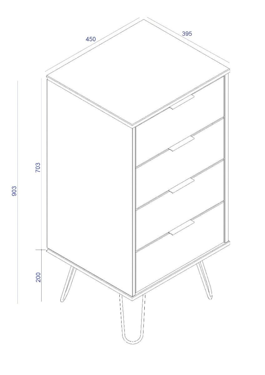 ARTA Grey Chest of Drawers - Tallboy, Small-sized, 4 Drawers