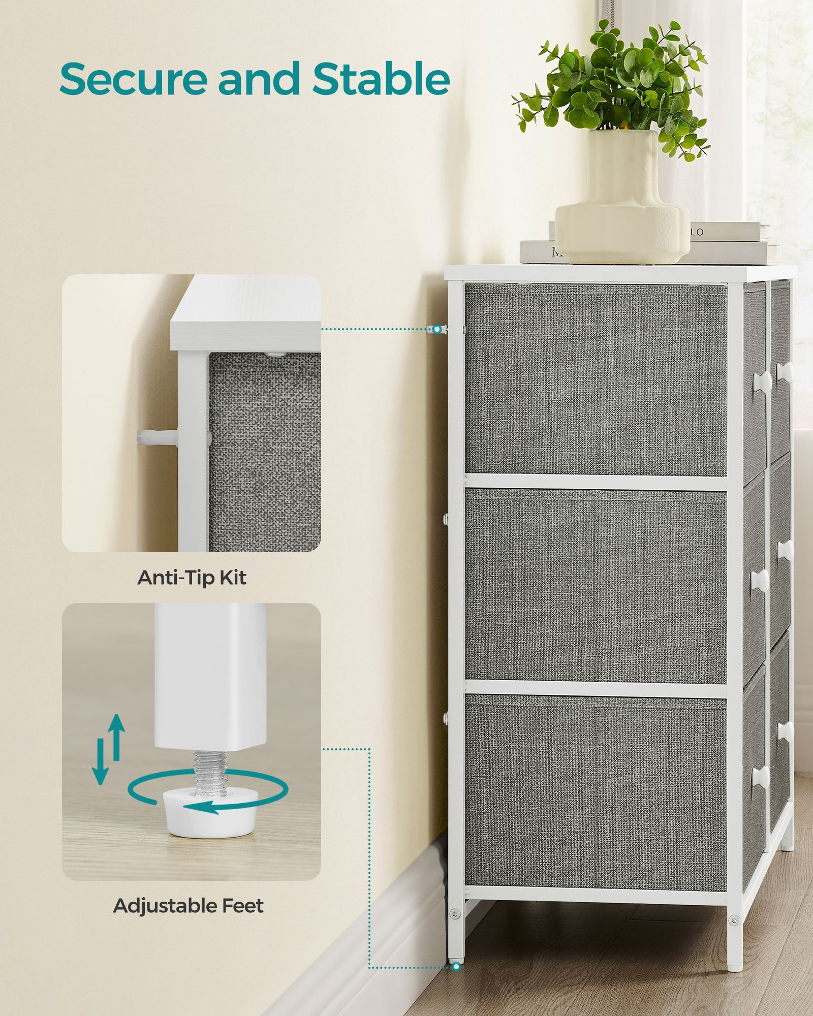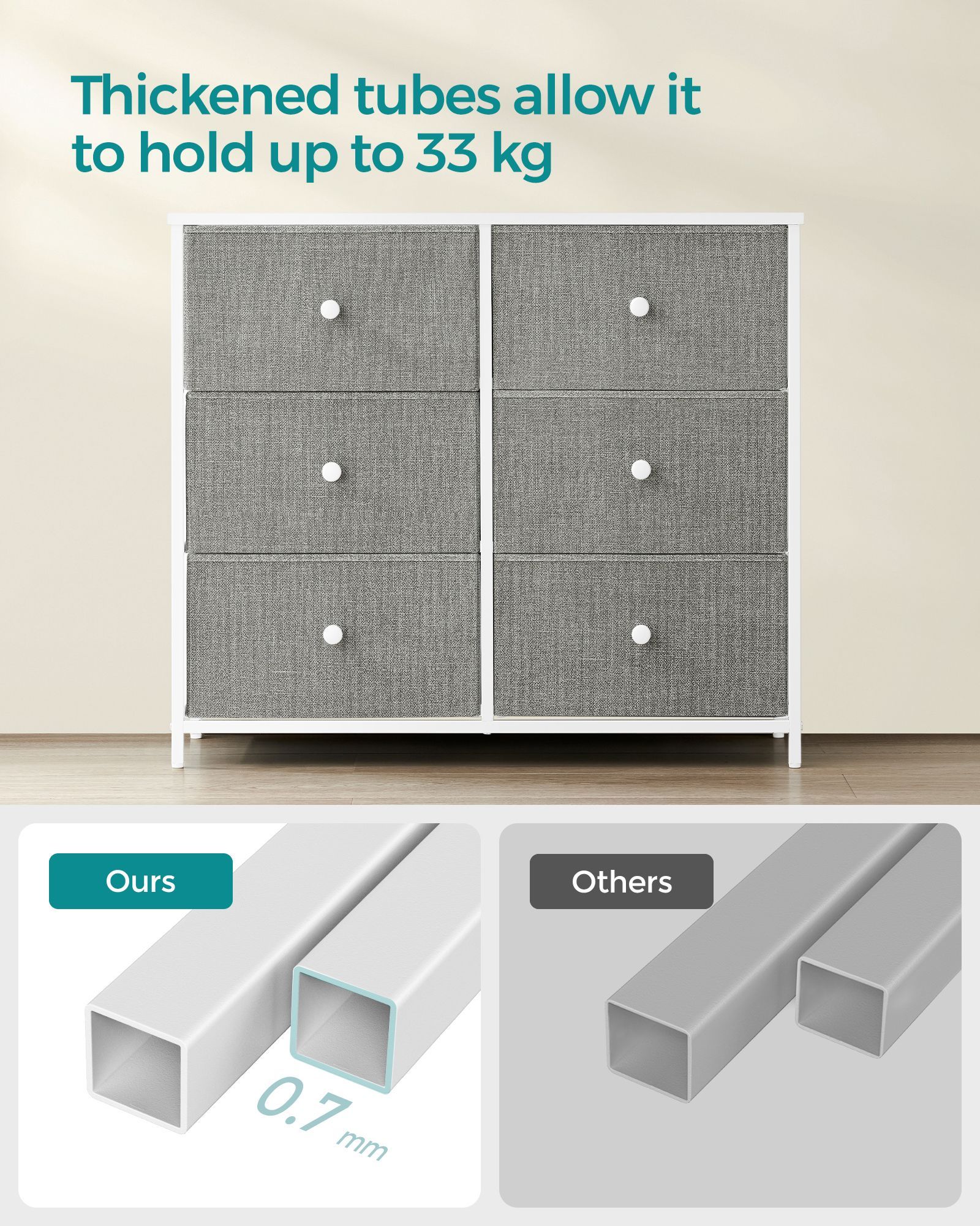 ARUN Grey Chest of Drawers - Medium-sized, 6 Drawers, Double