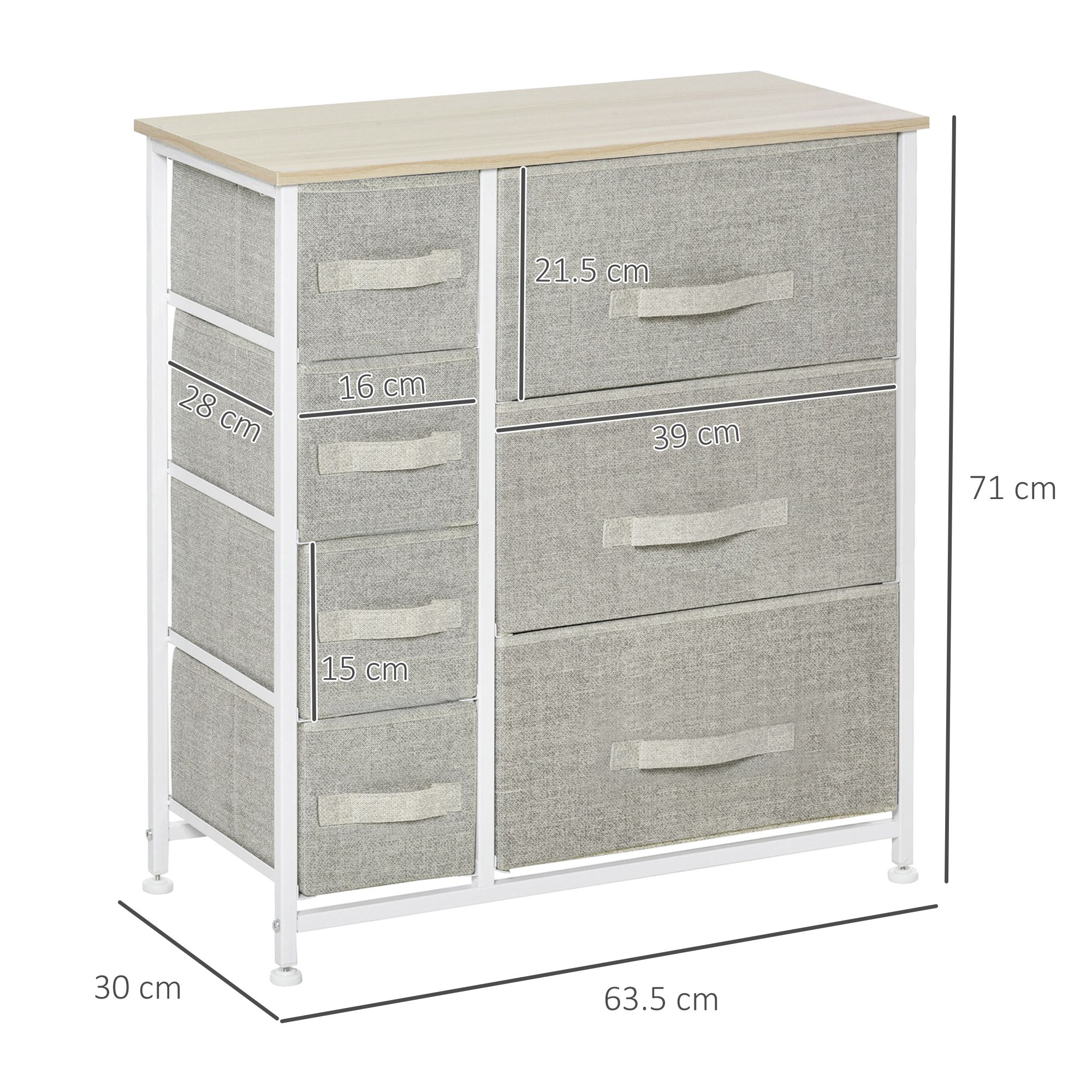 HERON Grey Chest of Drawers - Medium-sized, 7 Drawers, Fabric Drawers