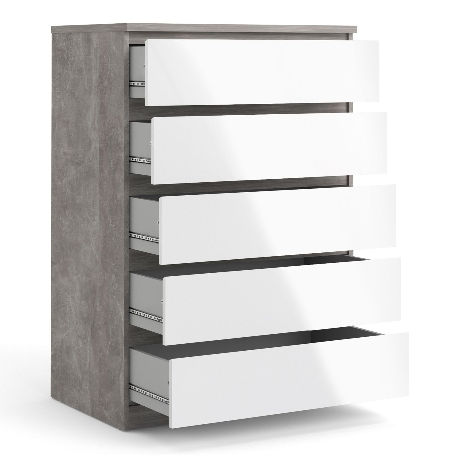 NANAIMO Grey Chest of Drawers - Medium-sized, 5 Drawers